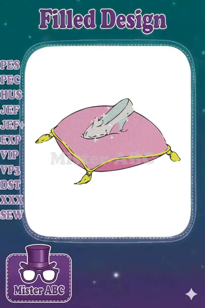 Cinderella’s Glass Slipper on Pink Pillow Embroidery Designs