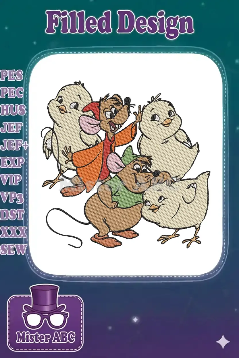 Cinderella’s Gus Jaq Mice and Baby Chicks Embroidery Designs