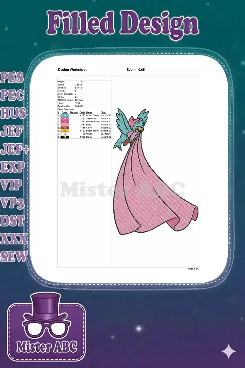 Cinderella’s Helper Blue Bird Pink Dress Embroidery Designs