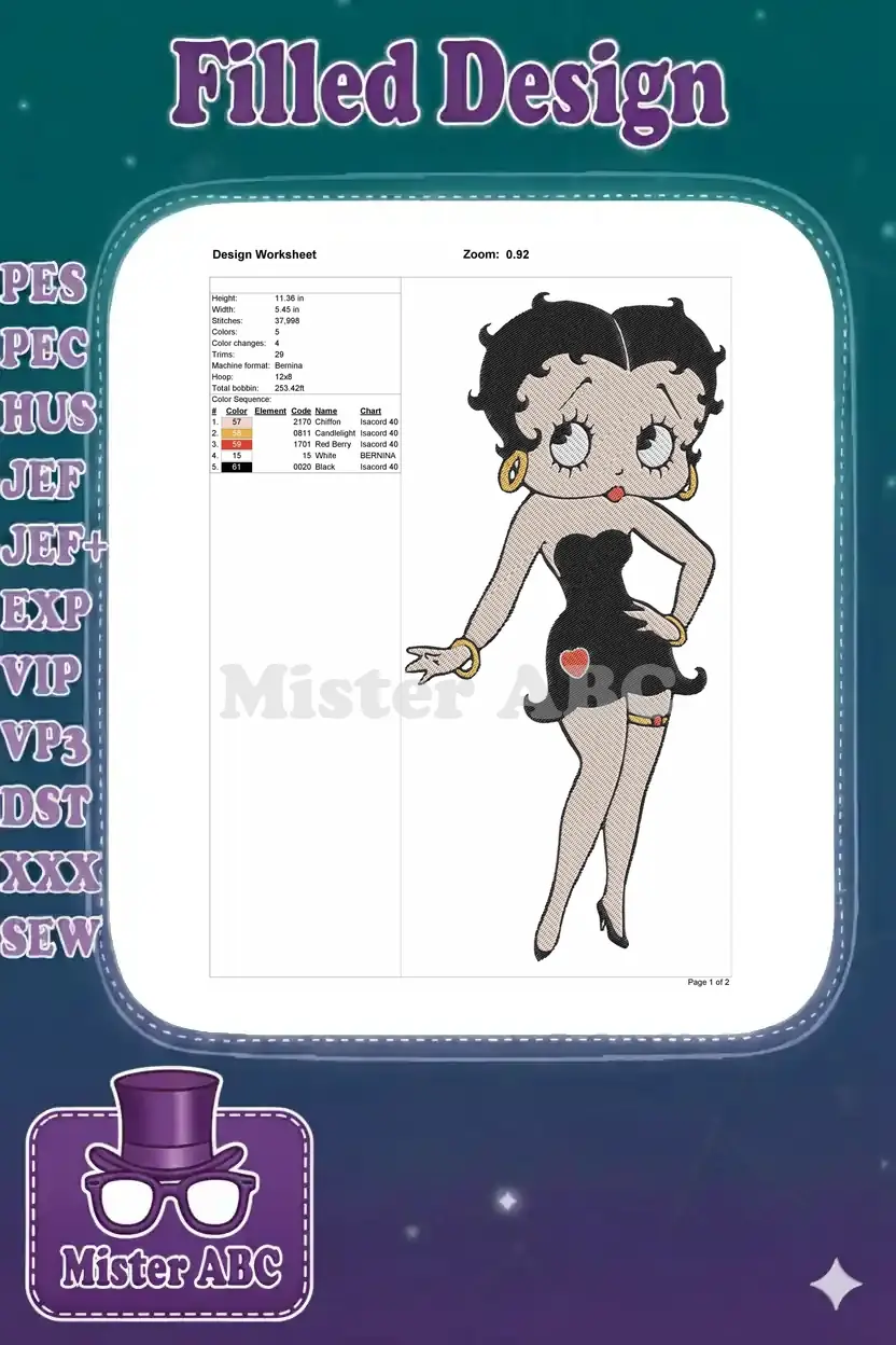 Classic Betty Boop Black Dress Pin-up Girl Embroidery Designs