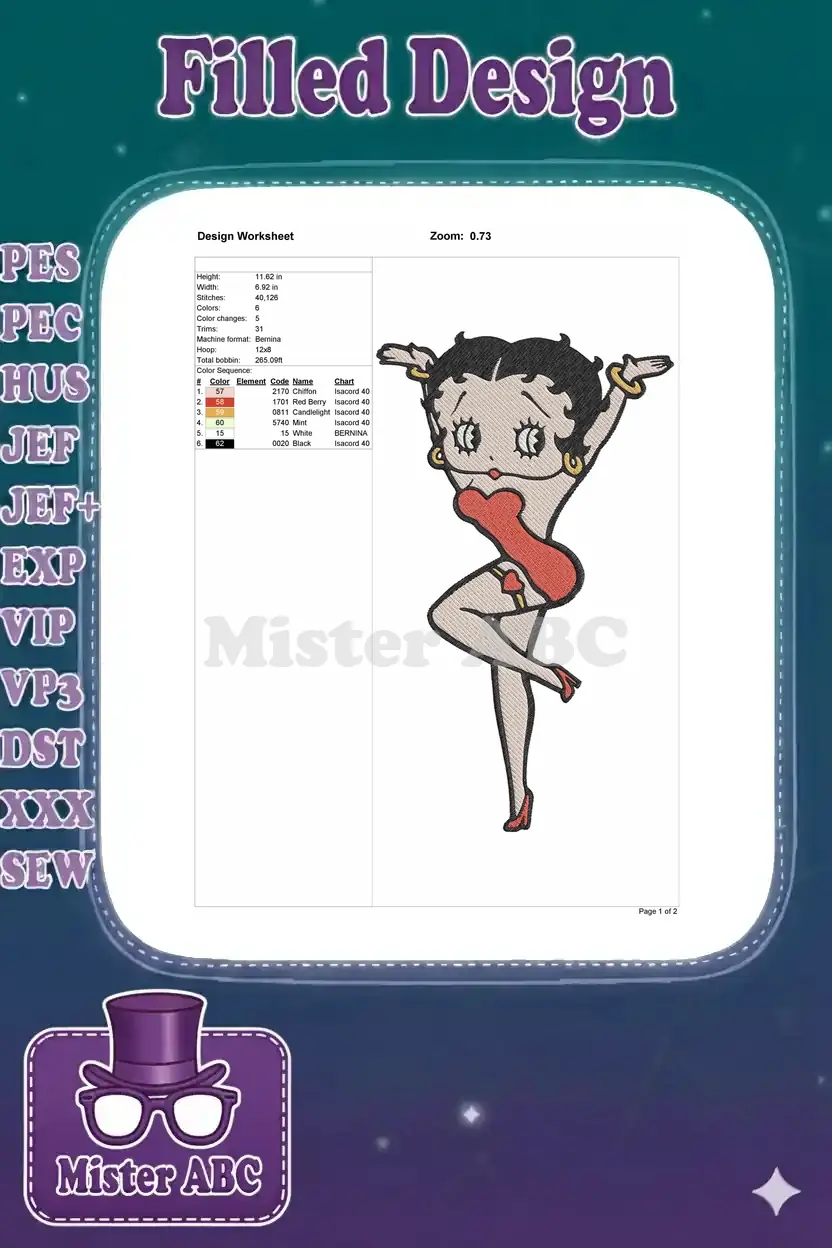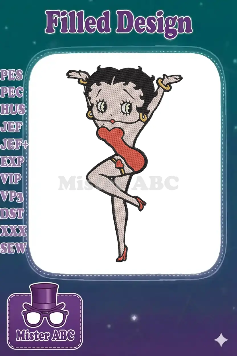 Classic Betty Boop Red Dress Flirty Pose Vintage Embroidery Designs