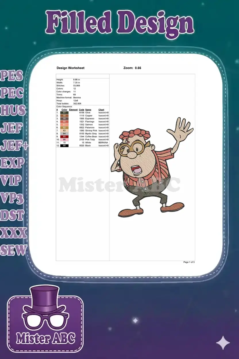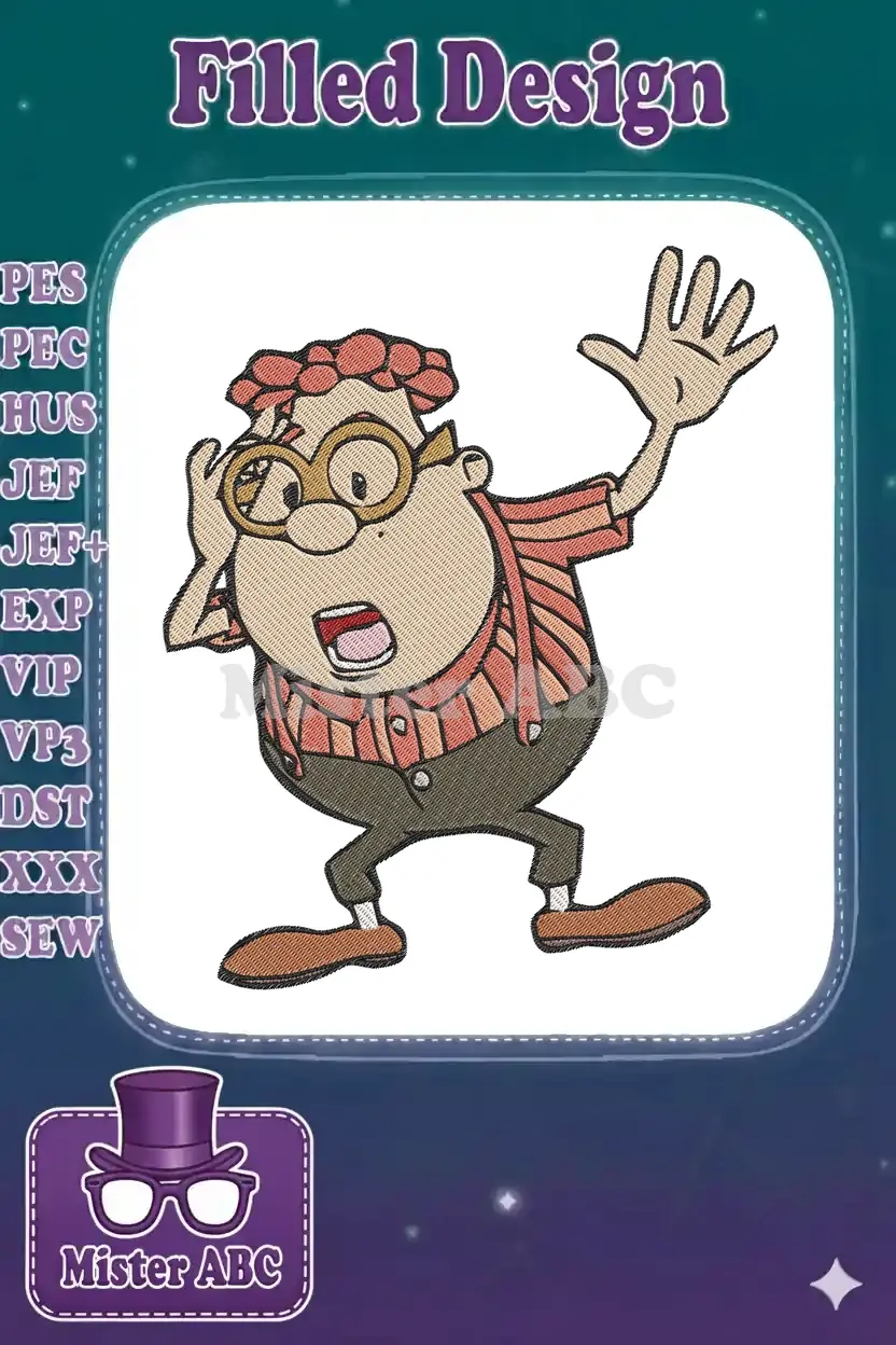 Classic Carl Wheezer surprised pose with glasses embroidery designs