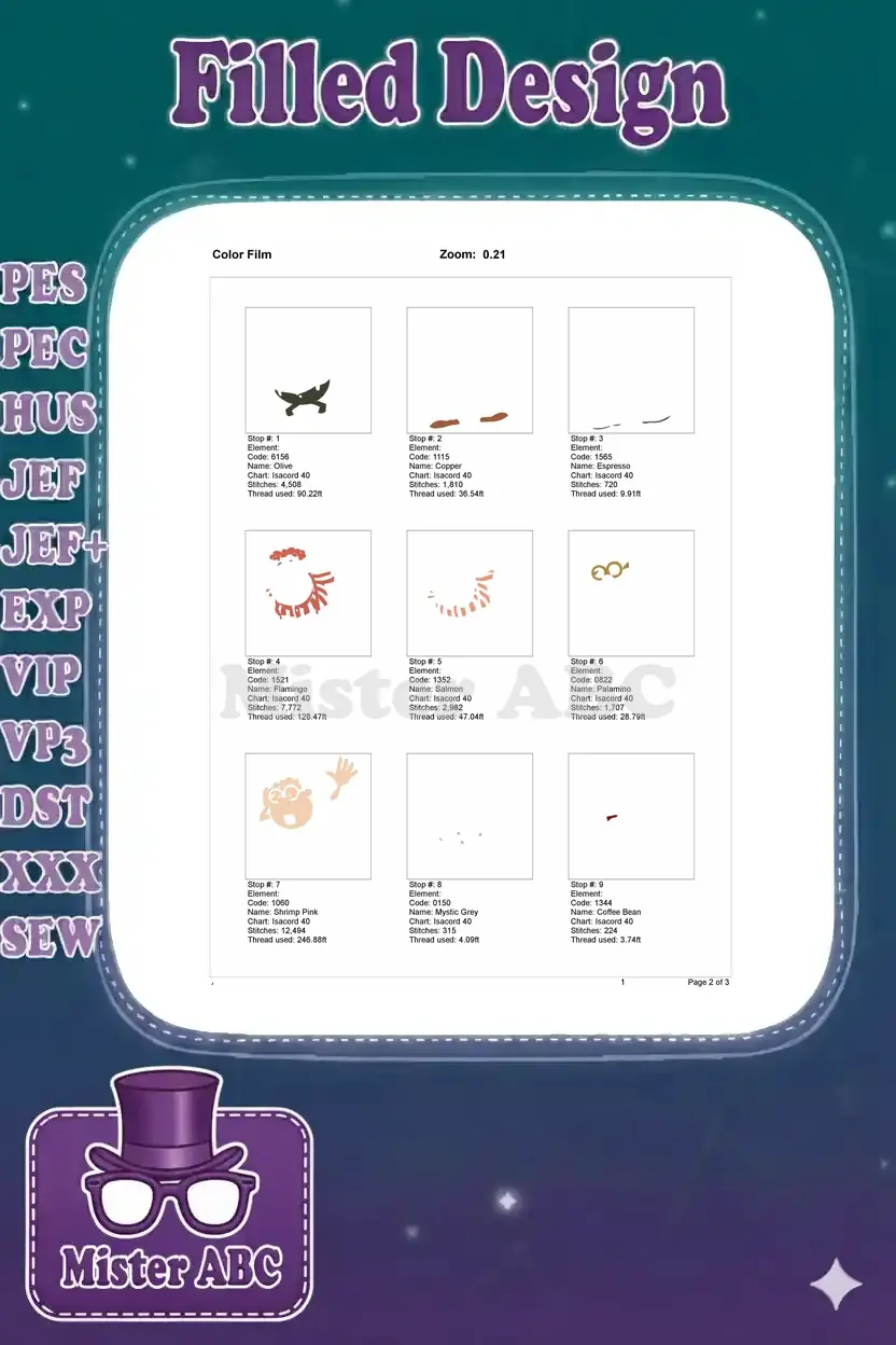 | Stitches | Colors | Thread Changes |