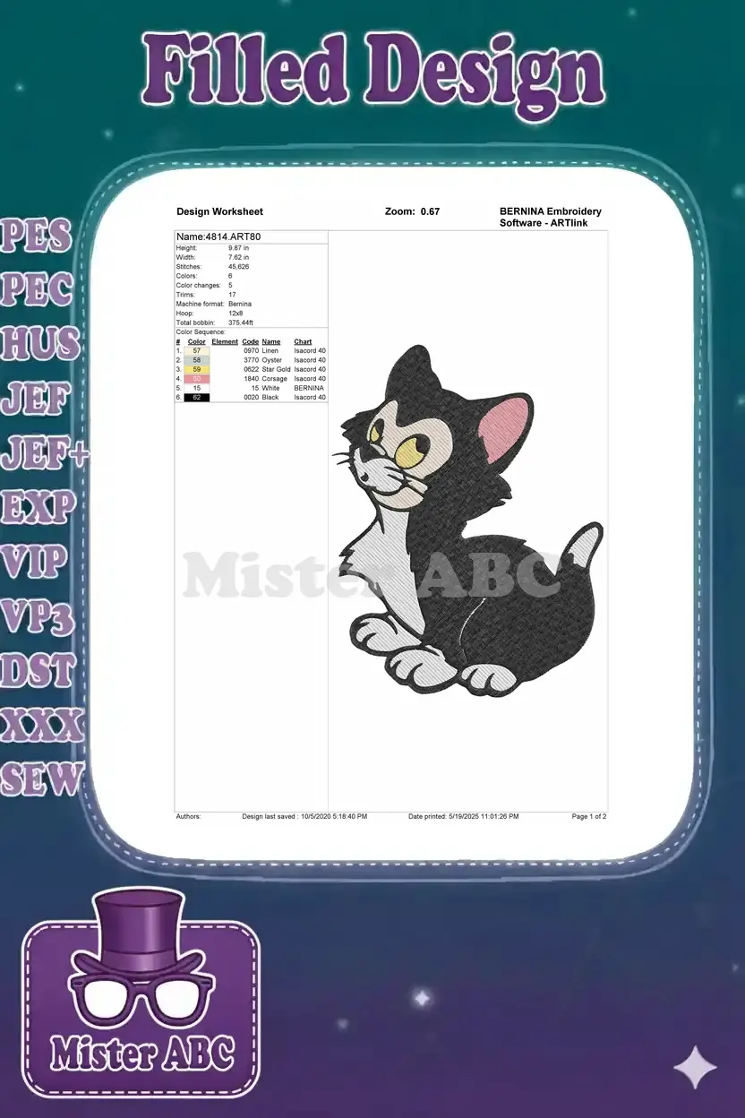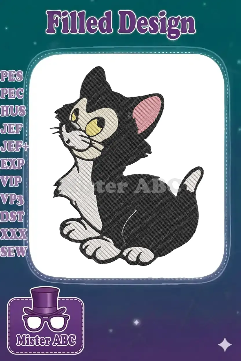 Classic Cartoon Black and White Figaro Cat Embroidery Designs