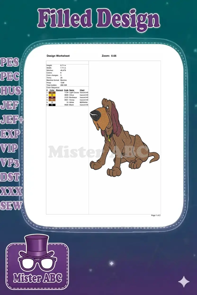 Classic Cartoon Brown Bloodhound Dog Sitting Embroidery Designs