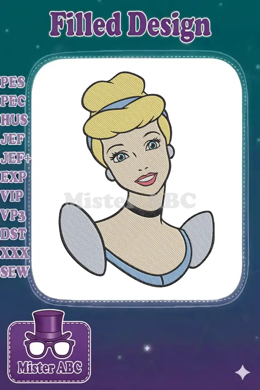 Classic Cinderella Princess Blonde Hair Blue Dress Embroidery Designs