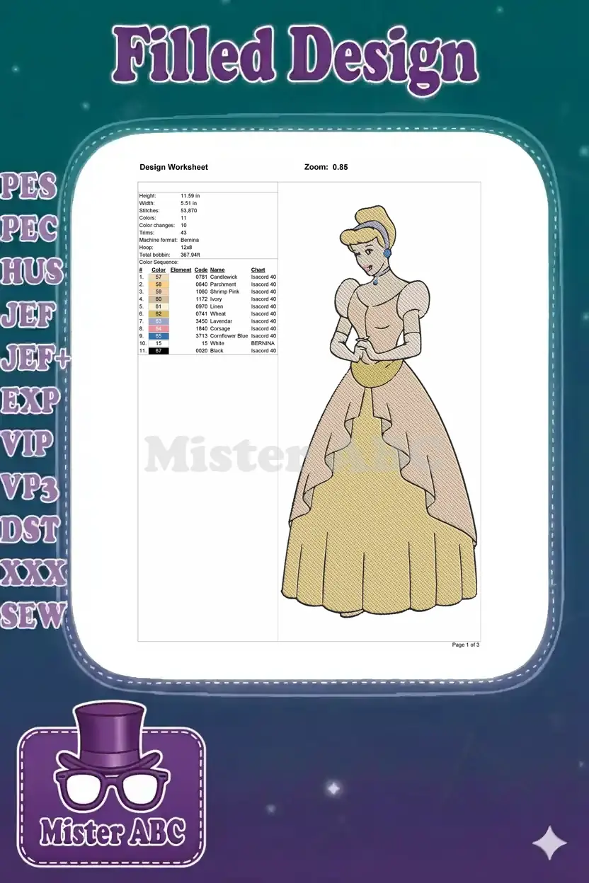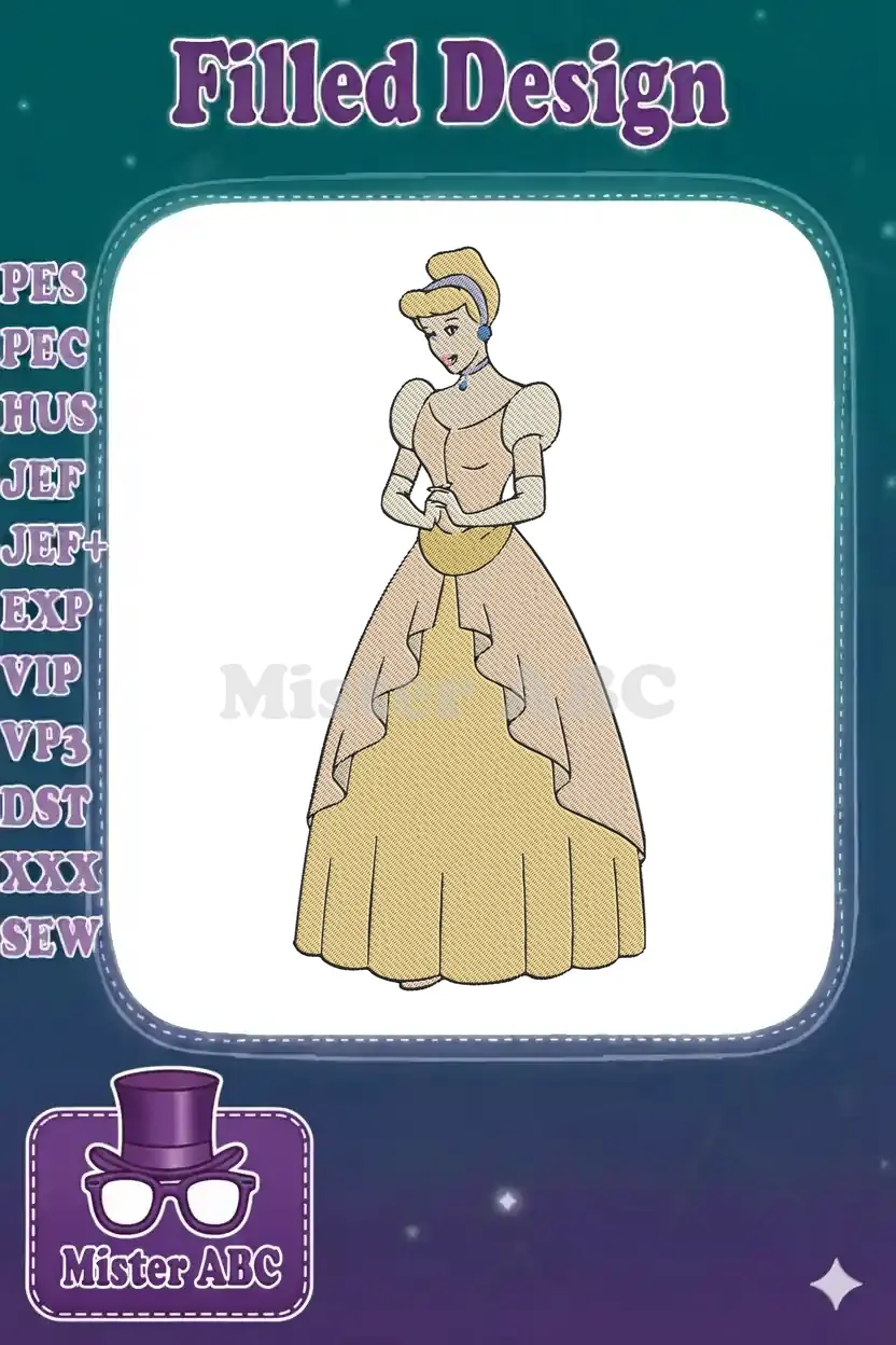 Classic Cinderella Princess in Elegant Pink Ball Gown Embroidery Designs