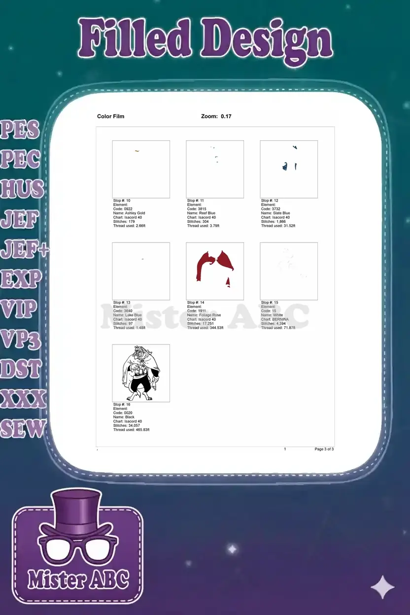| Stitches | Colors | Thread Changes |
