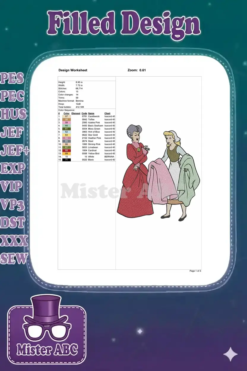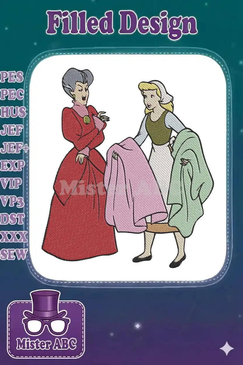 Classic Disney Cinderella and Evil Stepmother Chores Embroidery Designs