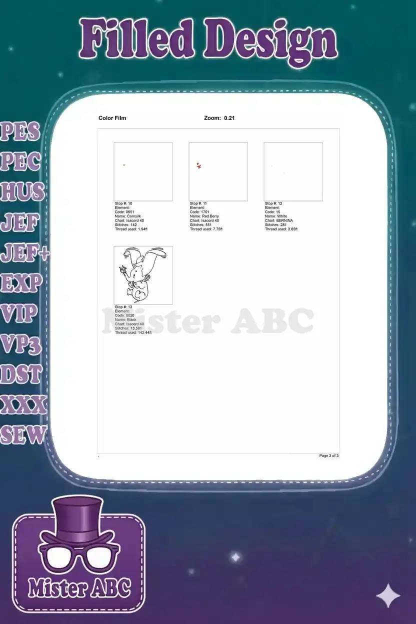 Classic Disney Dumbo Flying Elephant and Timothy Mouse Embroidery Designs