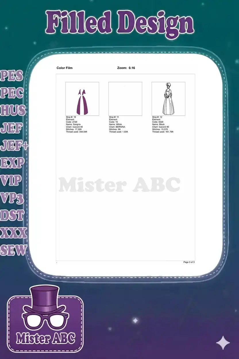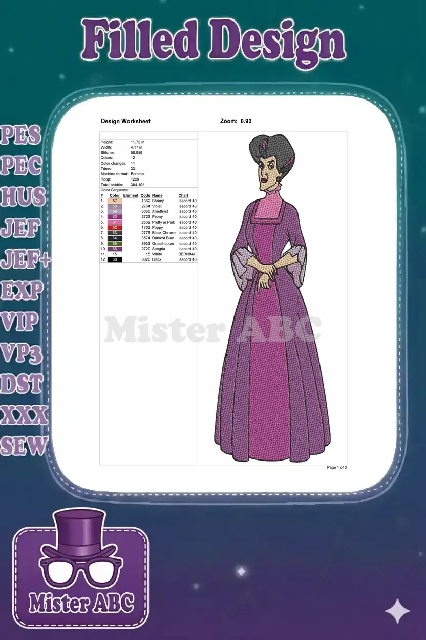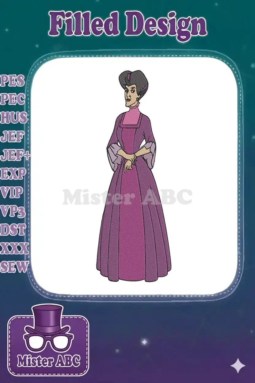 Classic Disney Villain Lady Tremaine Purple Dress Embroidery Designs