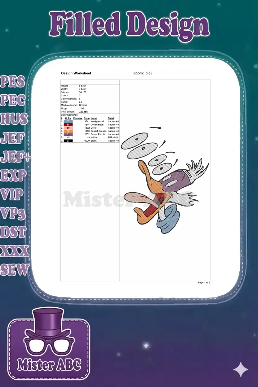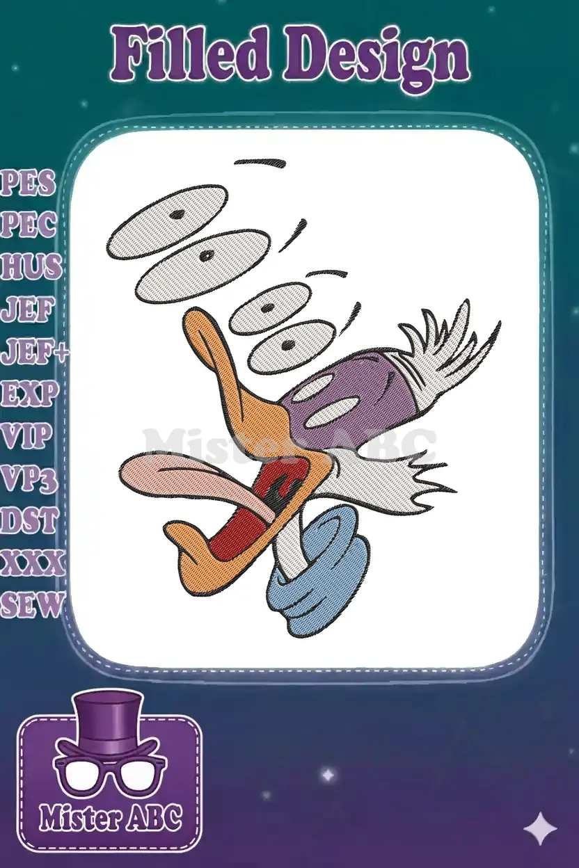 Classic Donald Duck surprised expression cartoon character embroidery designs