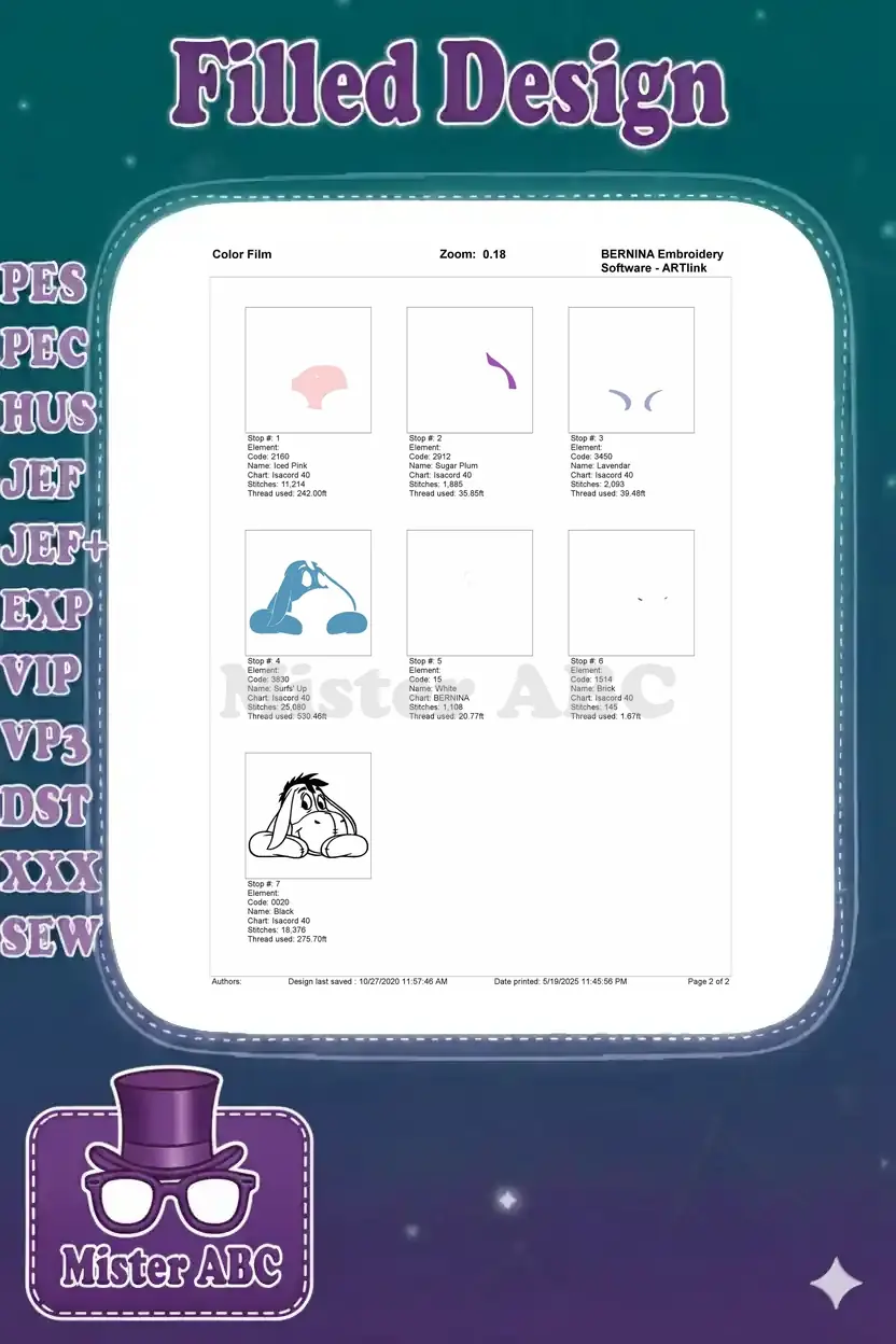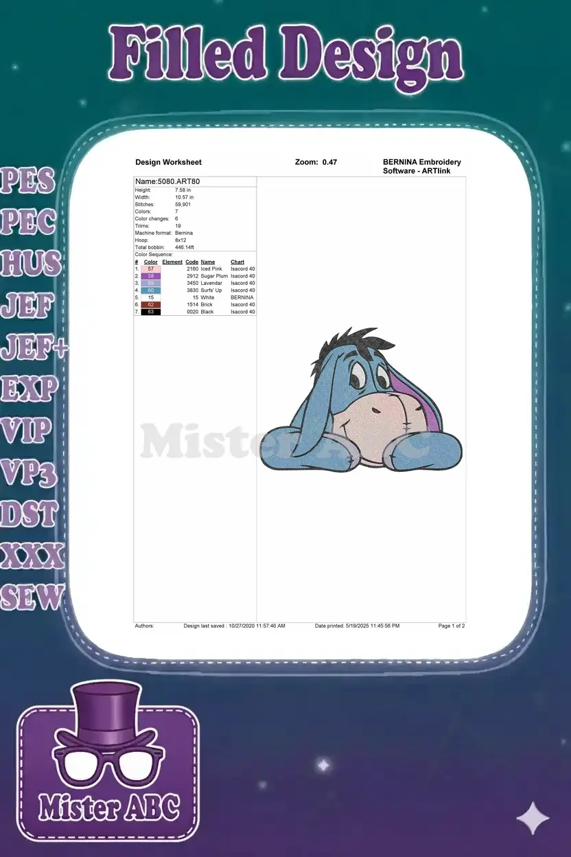 Capture Eeyore’s lovable melancholy with this delightful embroidery design, bringing a touch of Pooh’s Hundred Acre Wood to your projects.