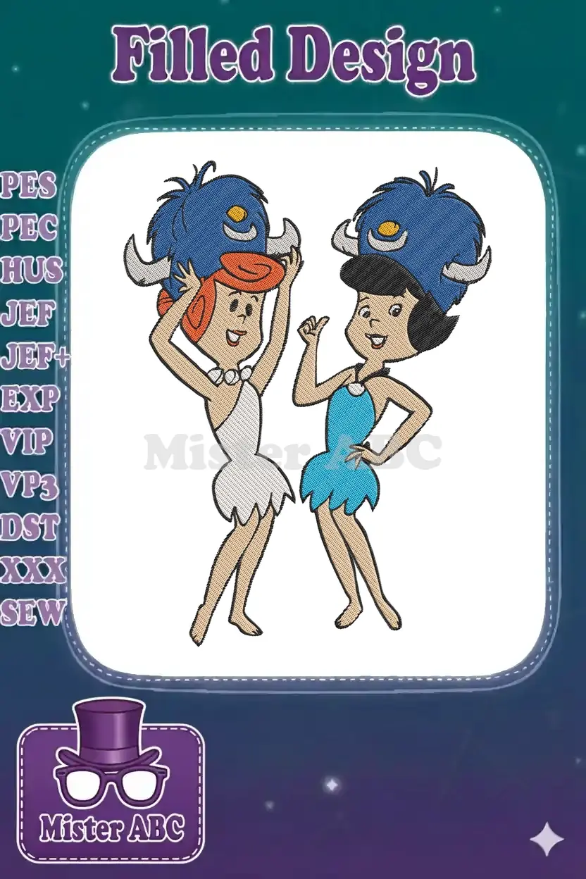 Classic Flintstones Wilma Betty Rubble furry monster hats embroidery designs