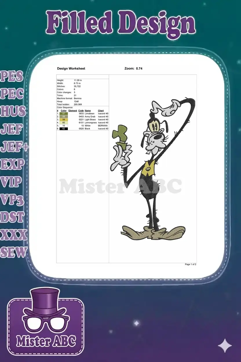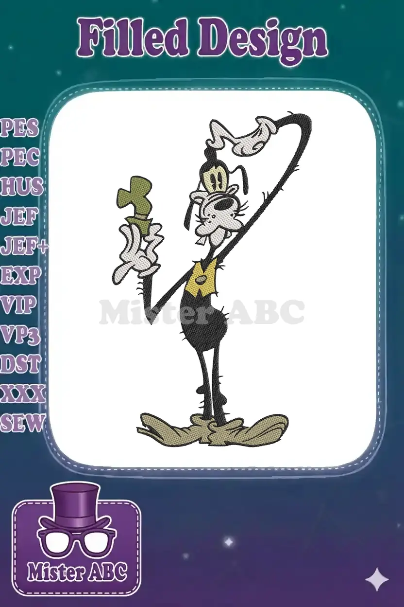 Classic Goofy Animated Cartoon Character Surprised Pose Embroidery Designs