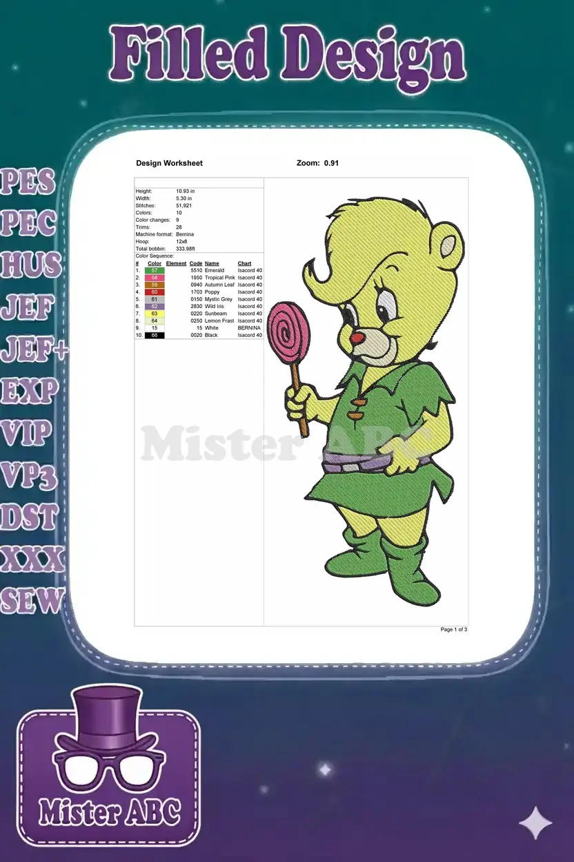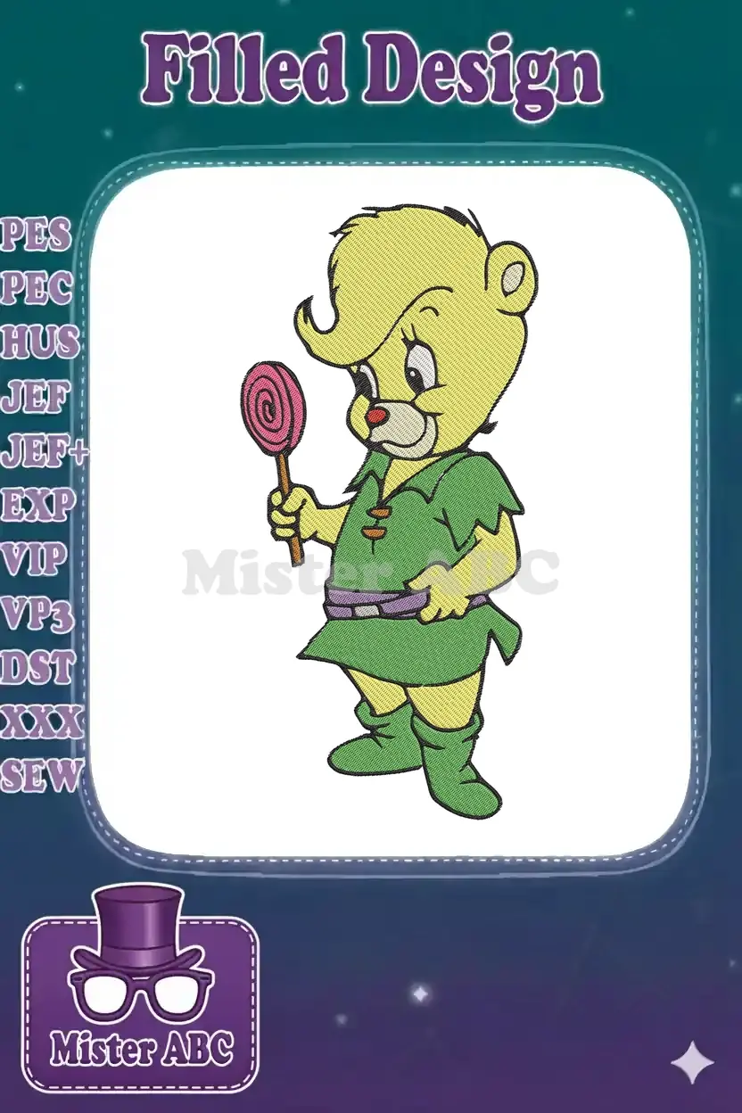 Classic Gummy Bear Character with Lollipop Embroidery Designs