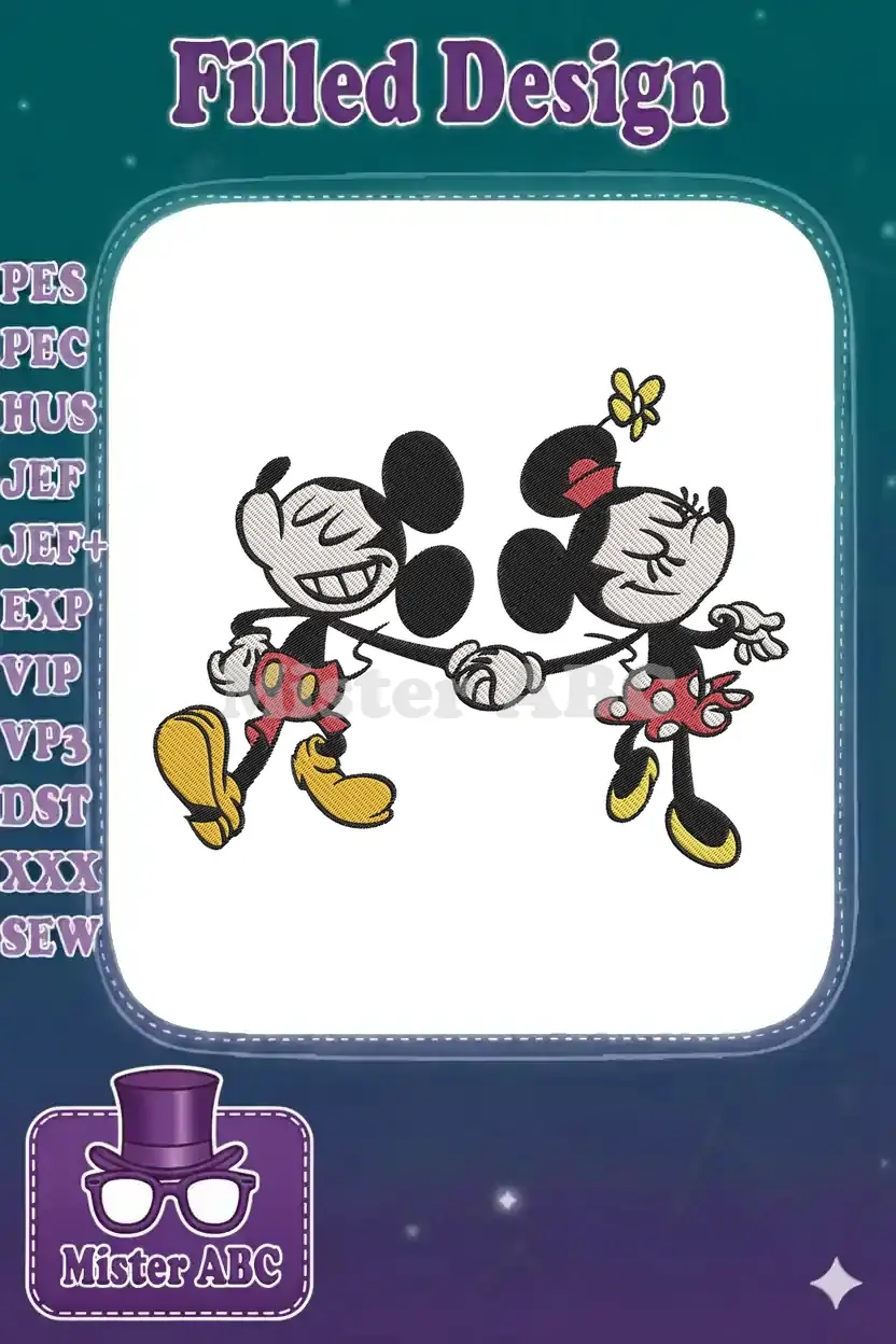 Classic Mickey and Minnie Mouse happy couple embroidery designs