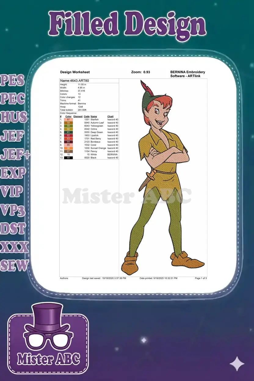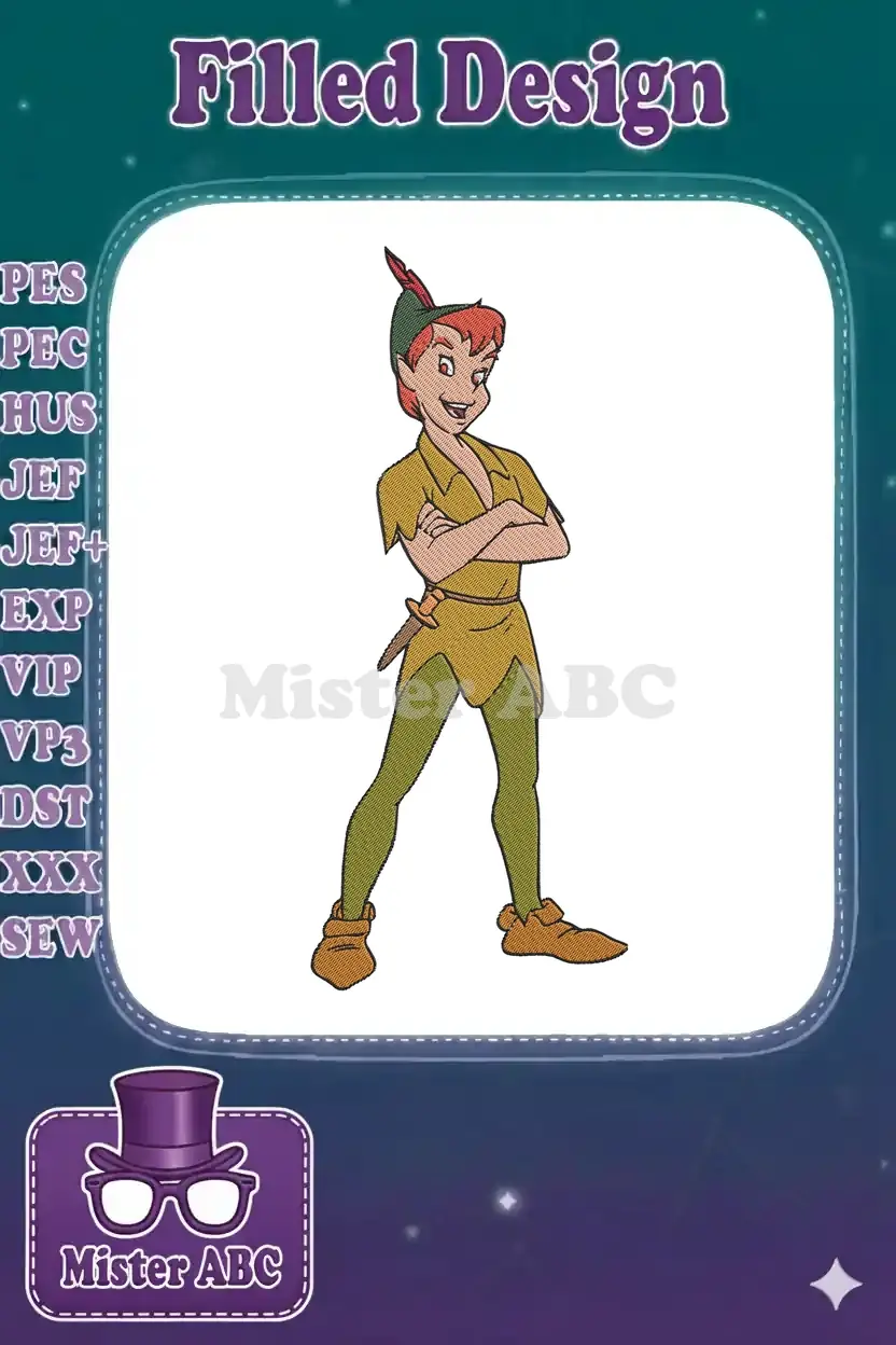 Classic Peter Pan character with dagger embroidery designs for boys