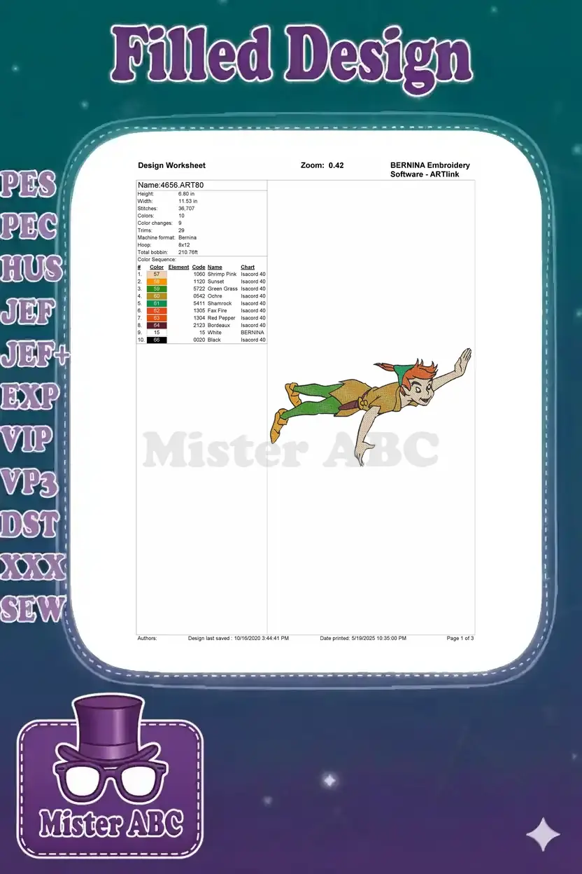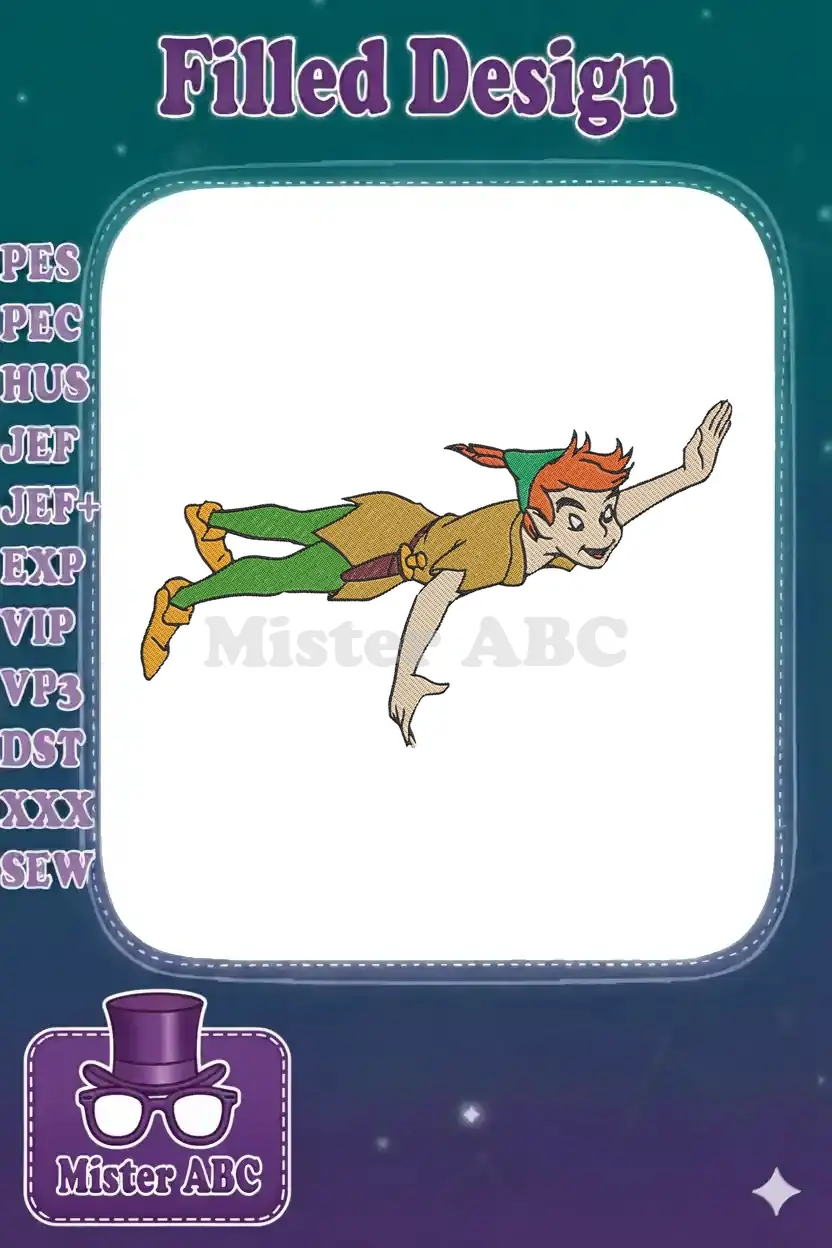 Classic Peter Pan Flying Adventure Character Embroidery Designs