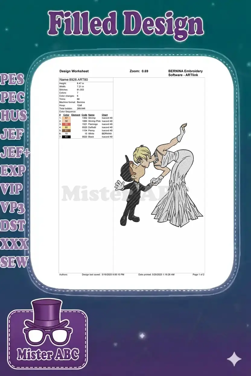 Classic Romantic Kissing Couple Elegant Evening Wear Embroidery Designs