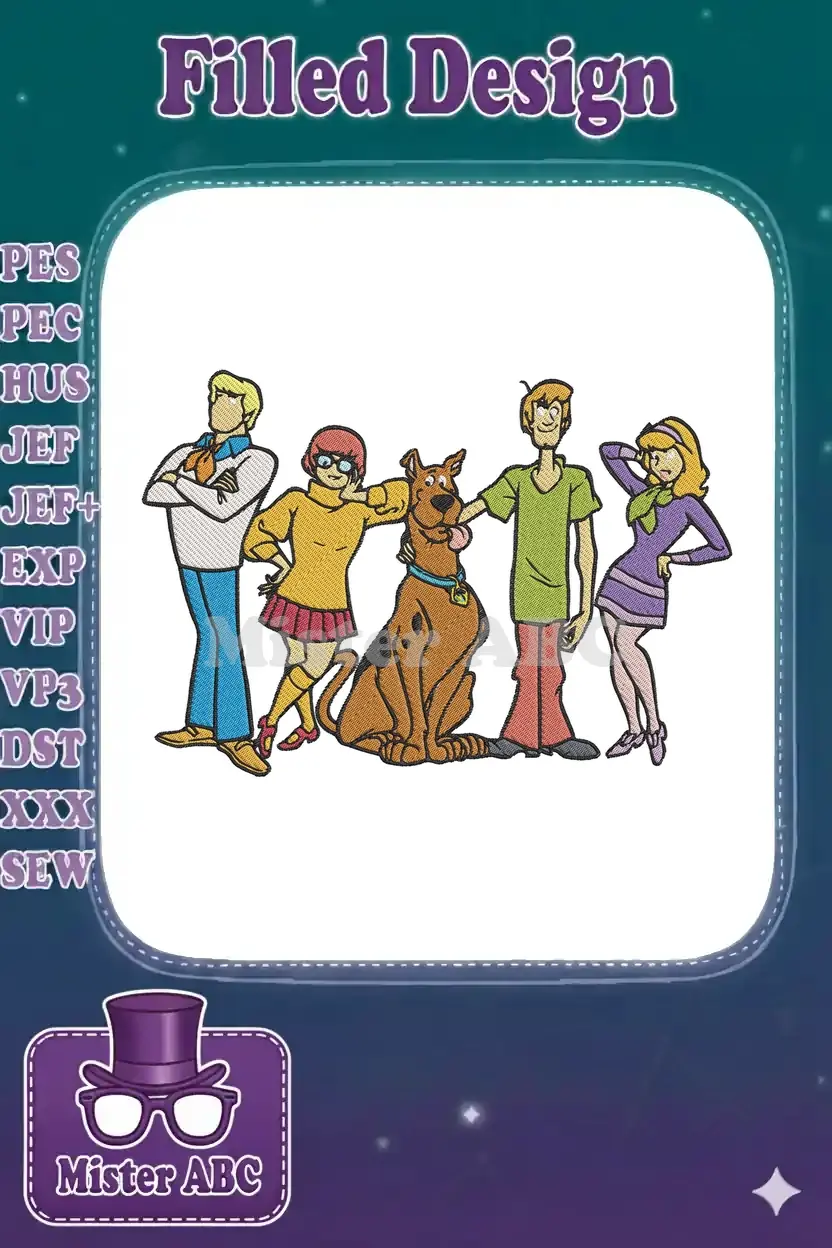 Classic Scooby-Doo gang cartoon characters dog embroidery designs