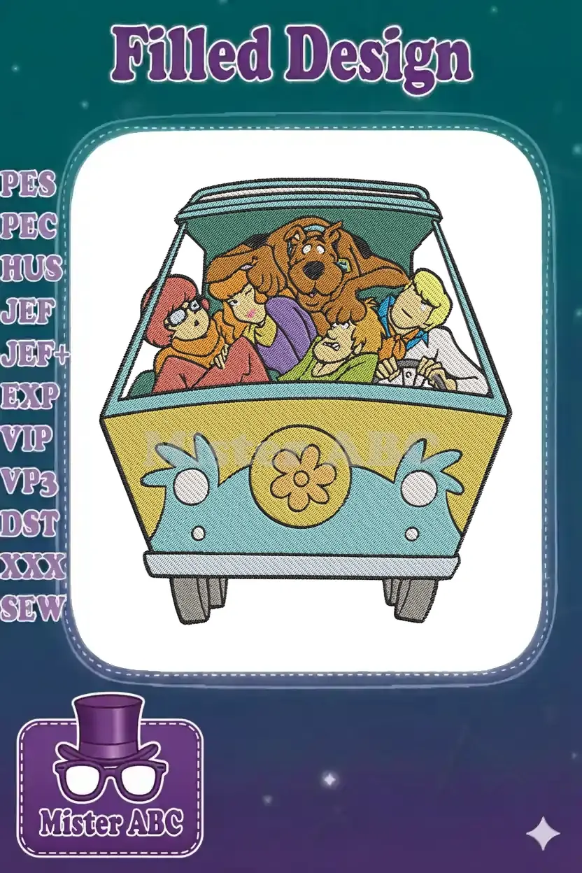 Classic Scooby-Doo gang Mystery Machine van embroidery designs