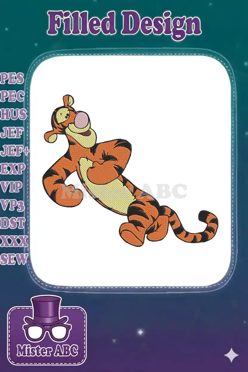 Classic Tigger smiling playful orange and black embroidery designs