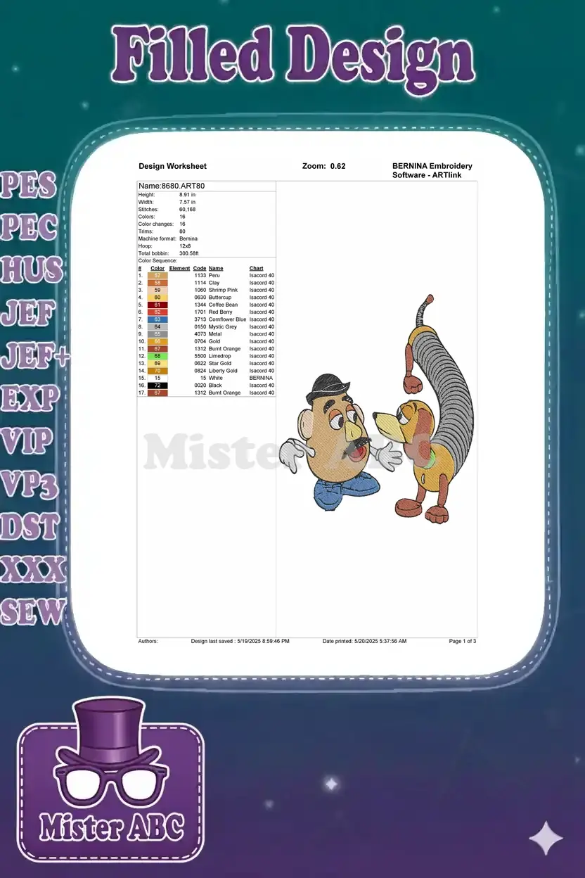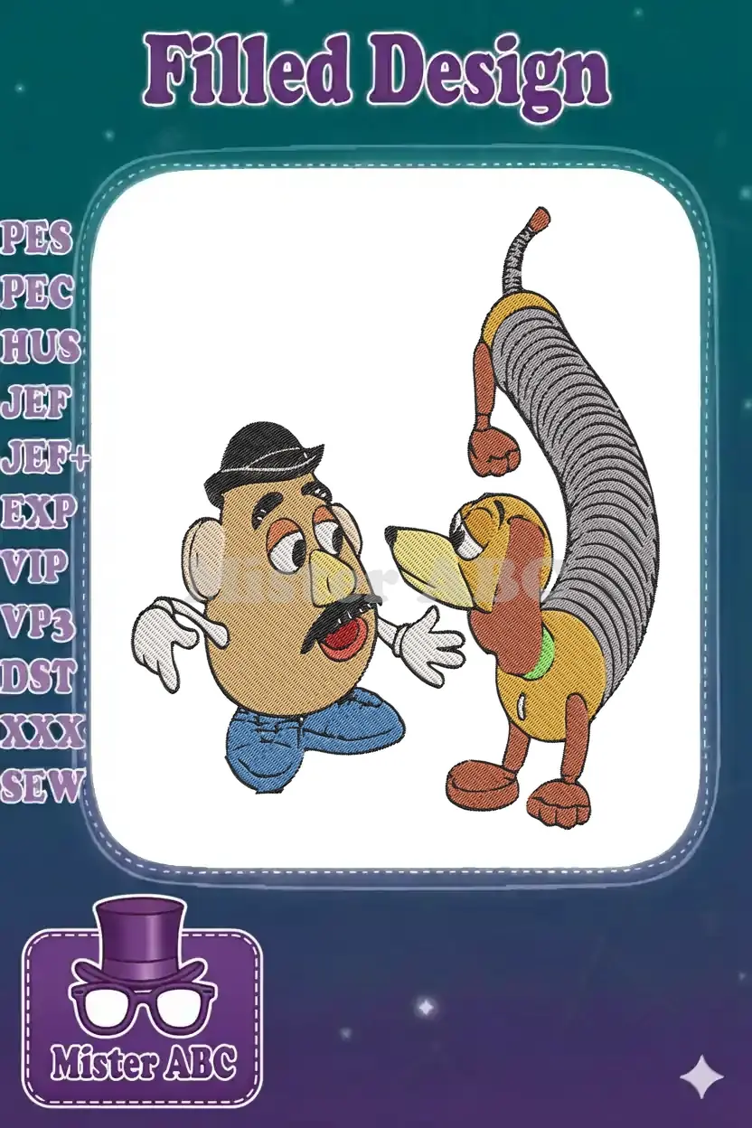 Classic Toy Story Mr Potato Head Slinky Dog character embroidery designs