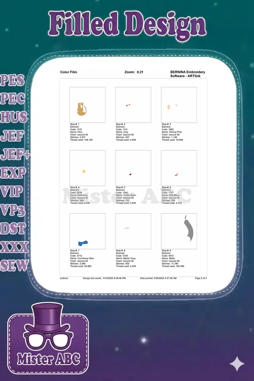 | Stitches | Colors | Thread Changes |