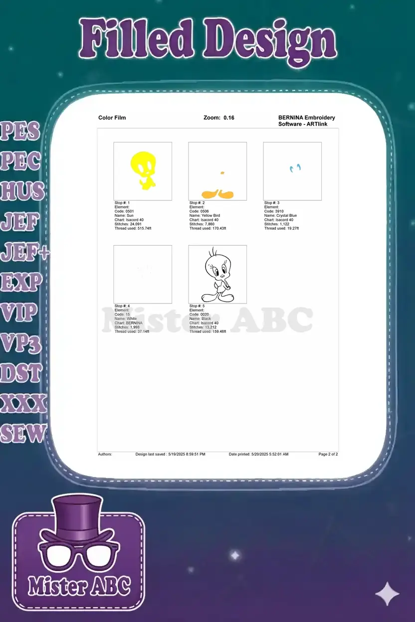 Classic Tweety Bird Cartoon Character Embroidery Designs