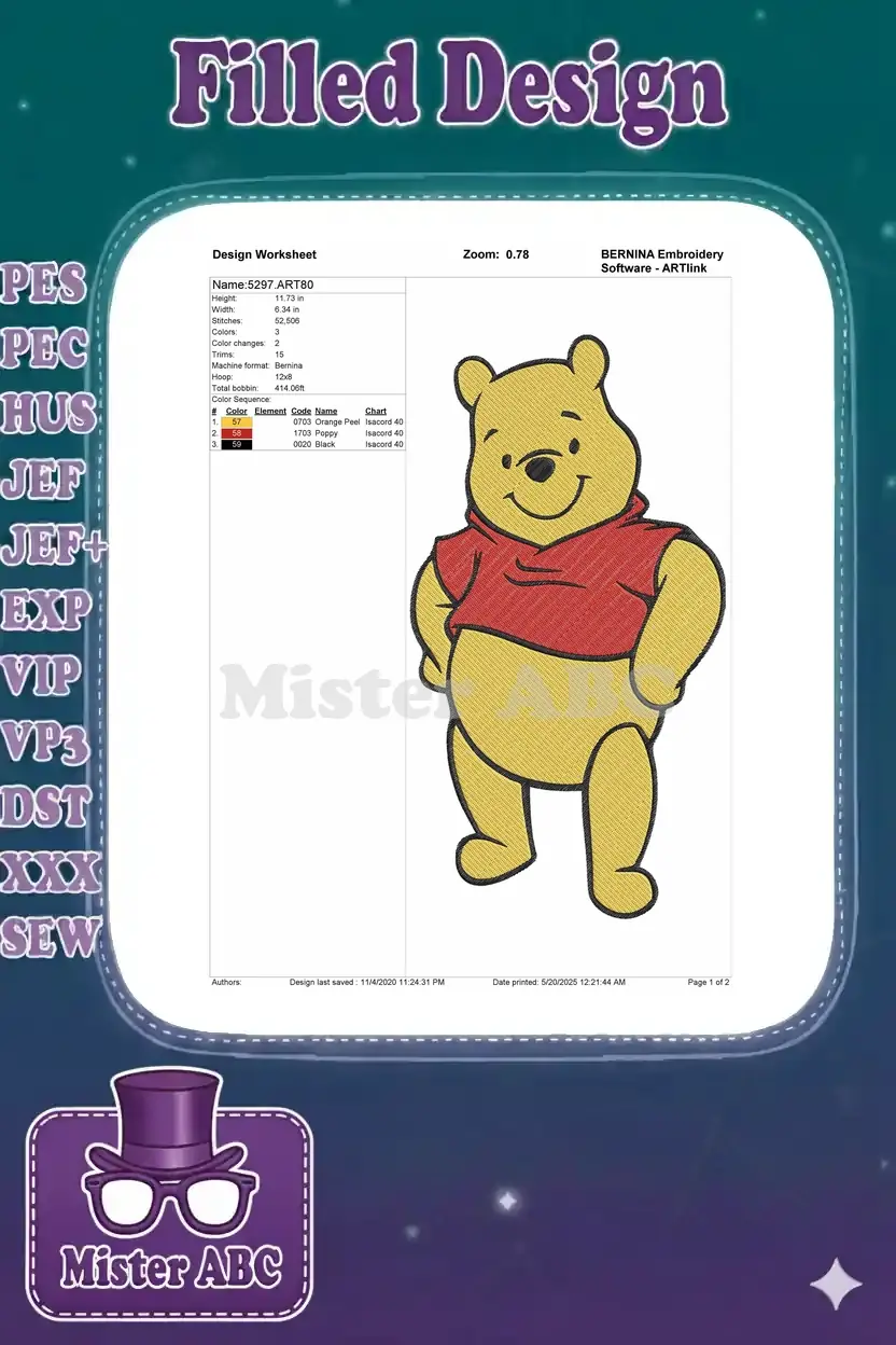 Classic Winnie the Pooh Smiling Bear Red Shirt Embroidery Designs