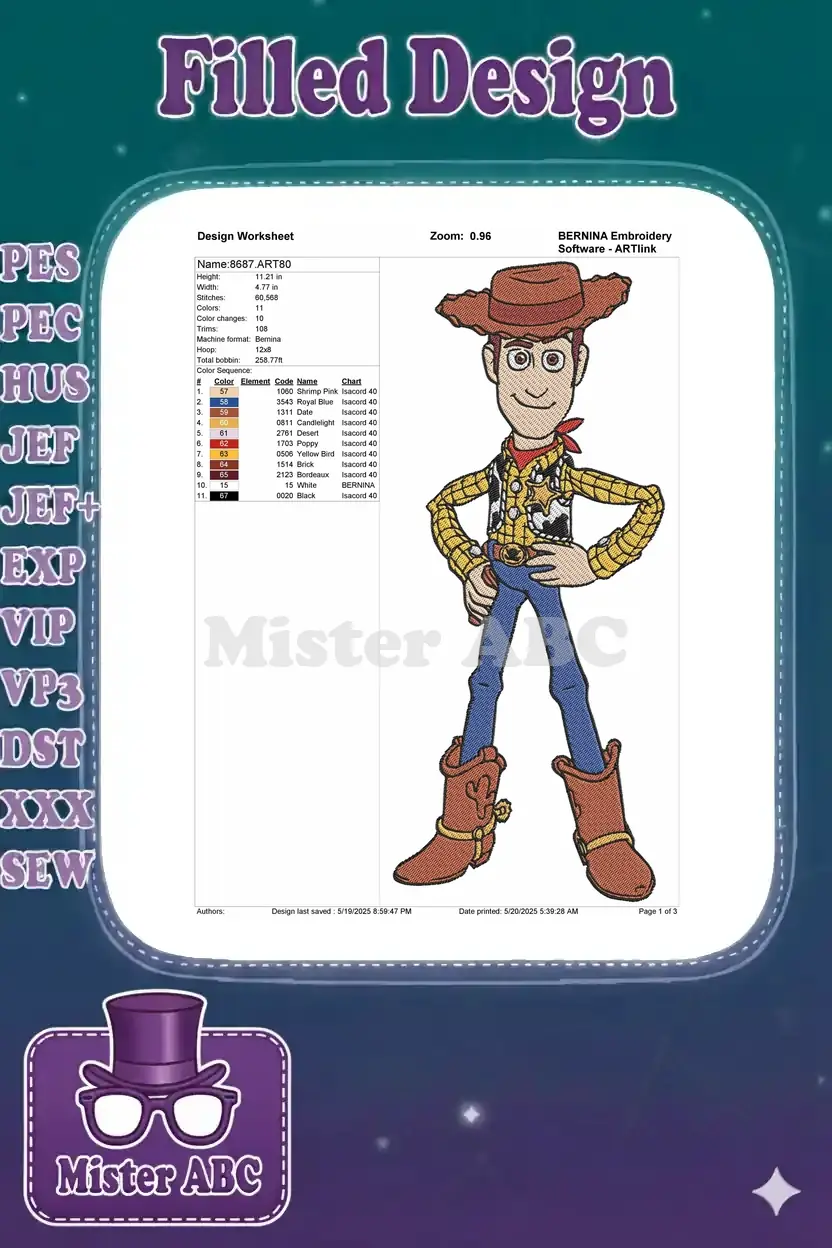 Classic Woody Toy Story Cowboy Character Embroidery Designs