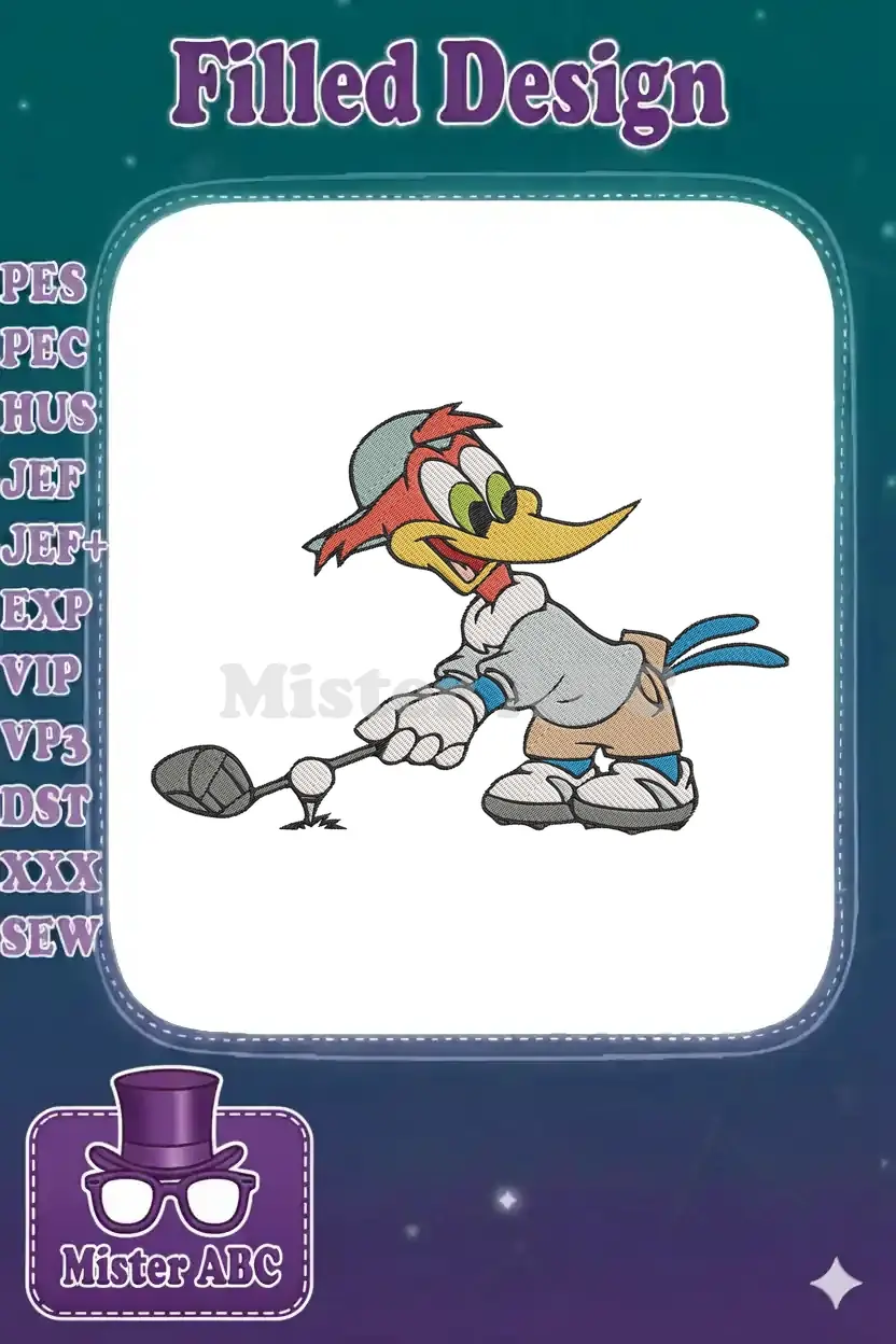 Classic Woody Woodpecker Playing Golf Sports Embroidery Designs
