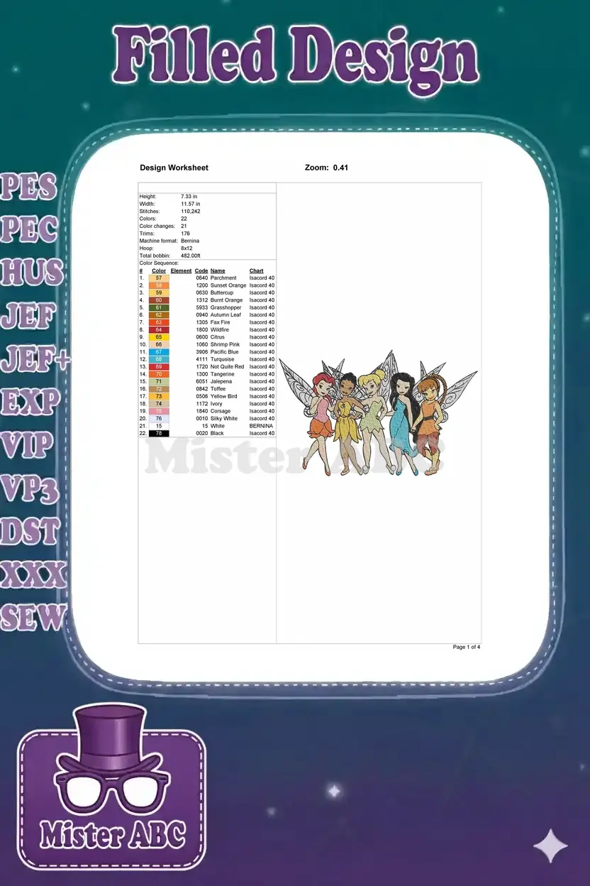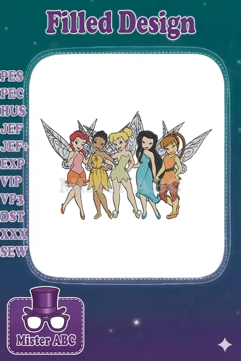 Colorful Tinker Bell and Fairy Friends Character Embroidery Designs