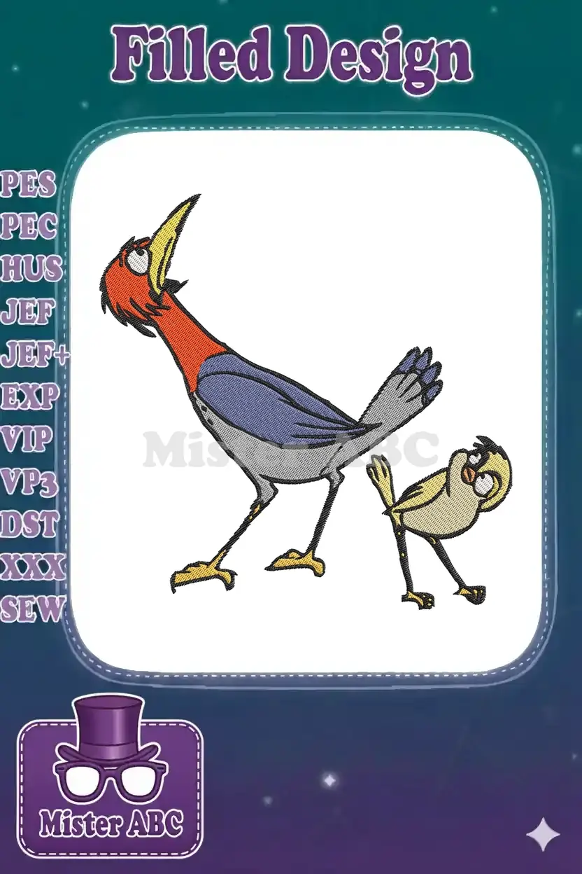 Comical Red-Headed and Yellow Cartoon Bird Embroidery Designs