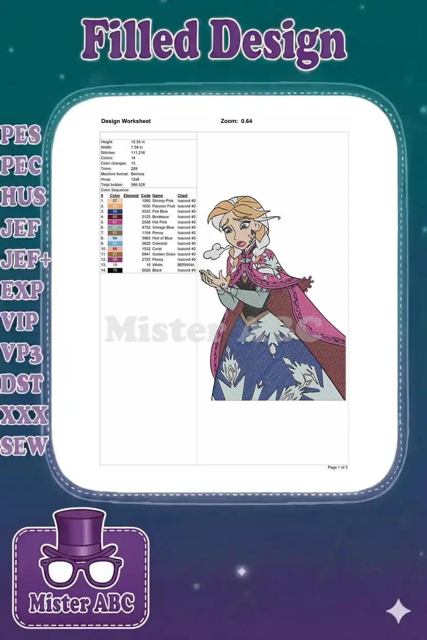 Concerned Princess Anna Frozen Winter Snowflakes Embroidery Designs