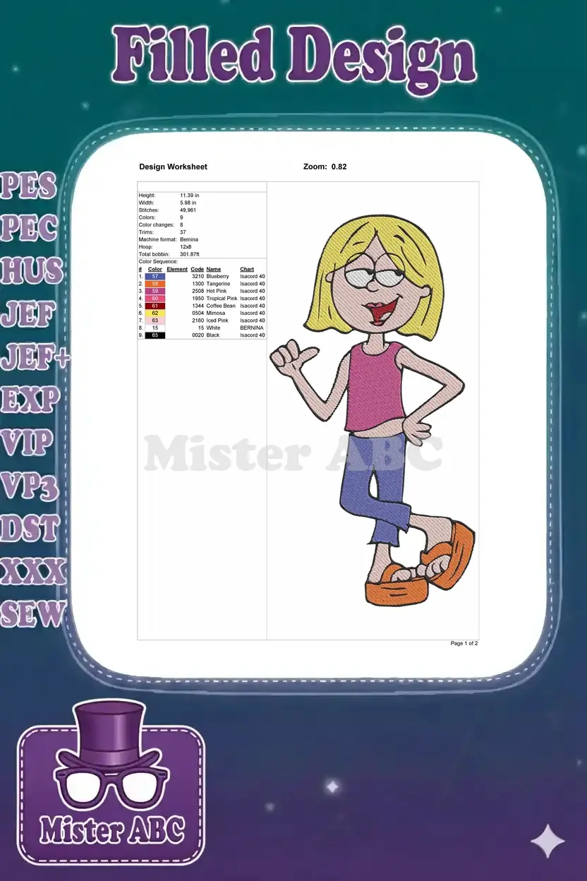Confident Blonde Girl Smiling Cartoon Embroidery Designs