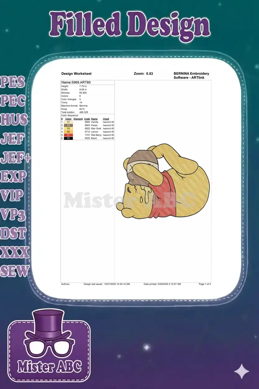Delightful Winnie the Pooh embroidery design capturing a sweet moment with a honey pot. Perfect for fans of the classic character!