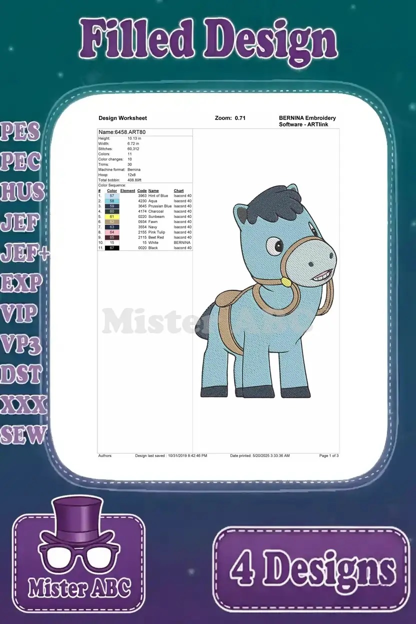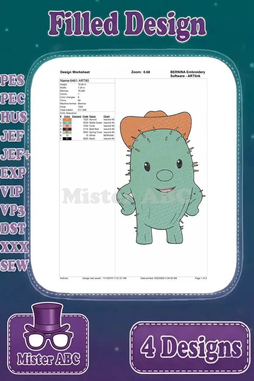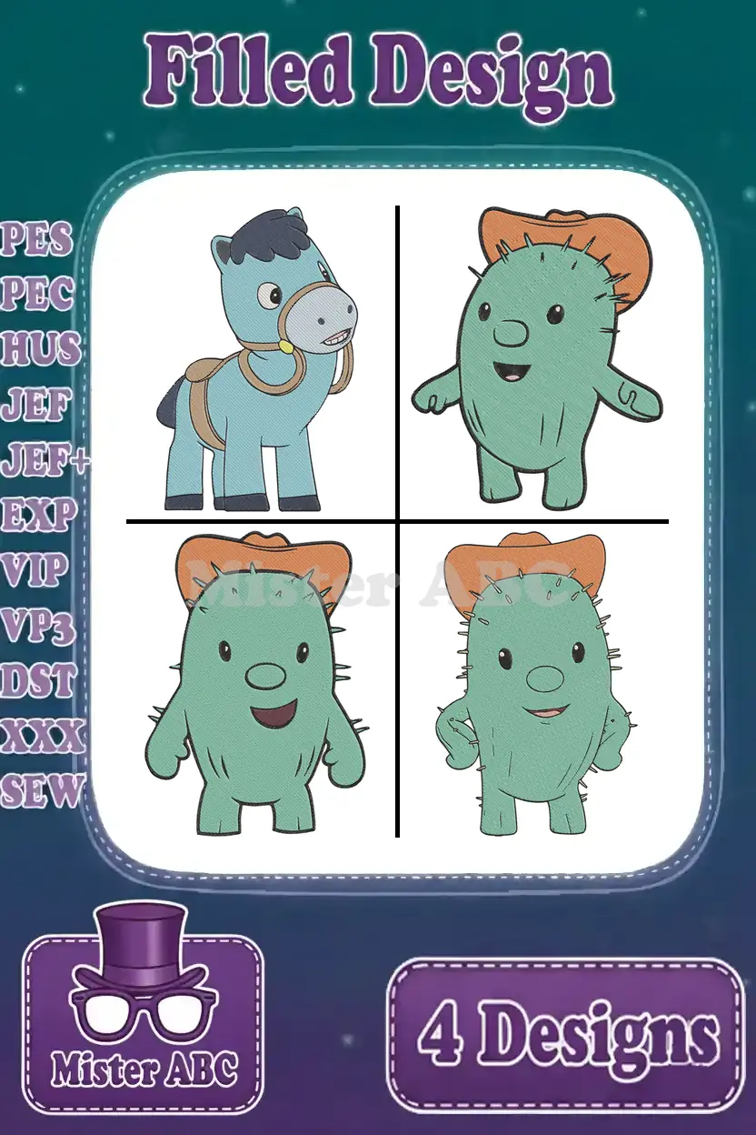 Corn And Peg Characters Corn The Blue Unicorn Pegasus And Ferris Cactus Pal – Filled Embroidery Design