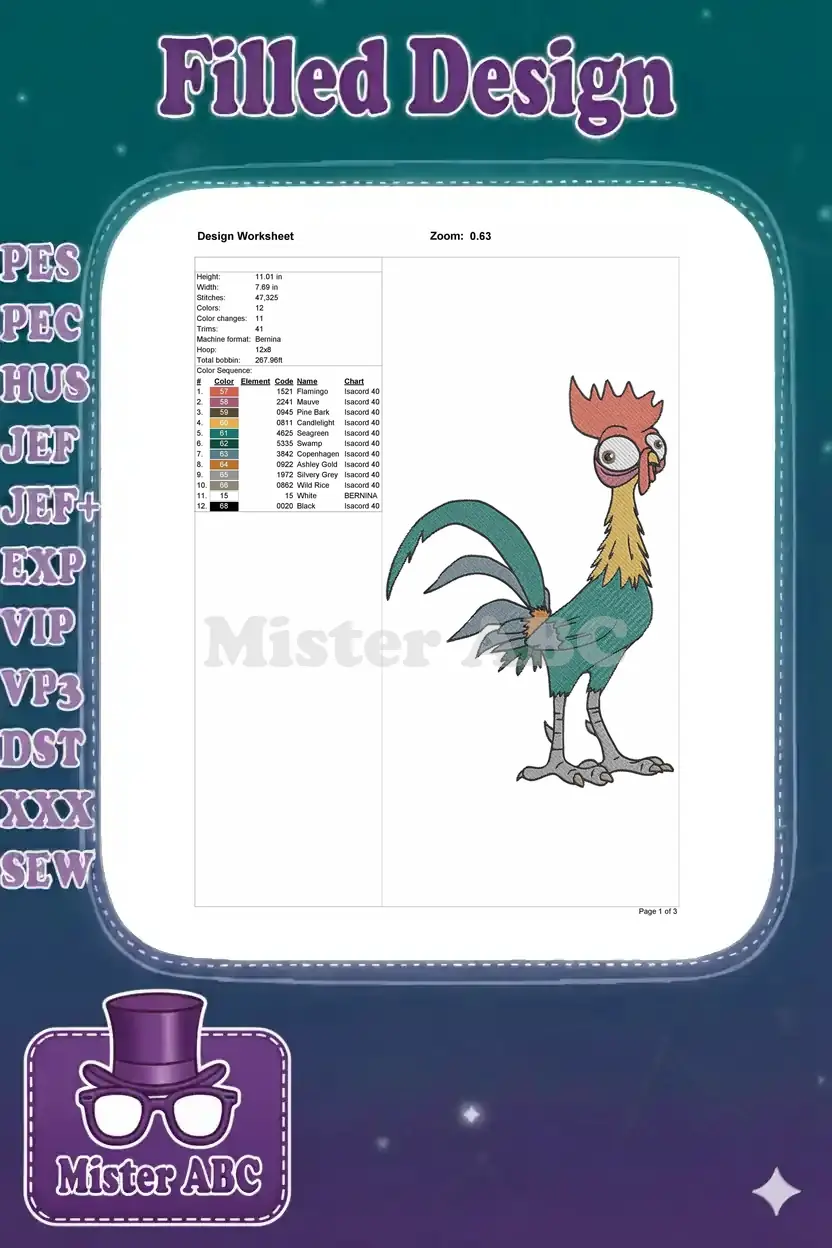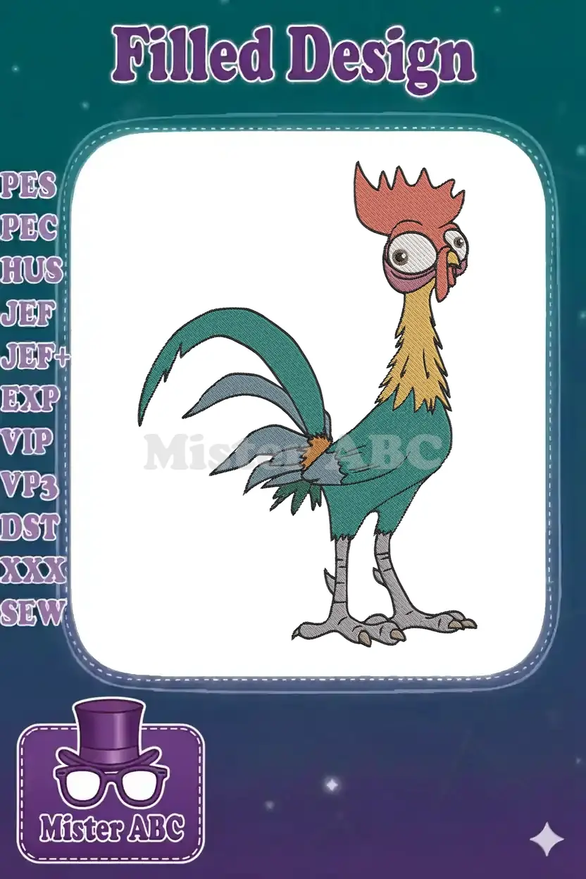Crazy eyed Heihei rooster cartoon animal embroidery designs
