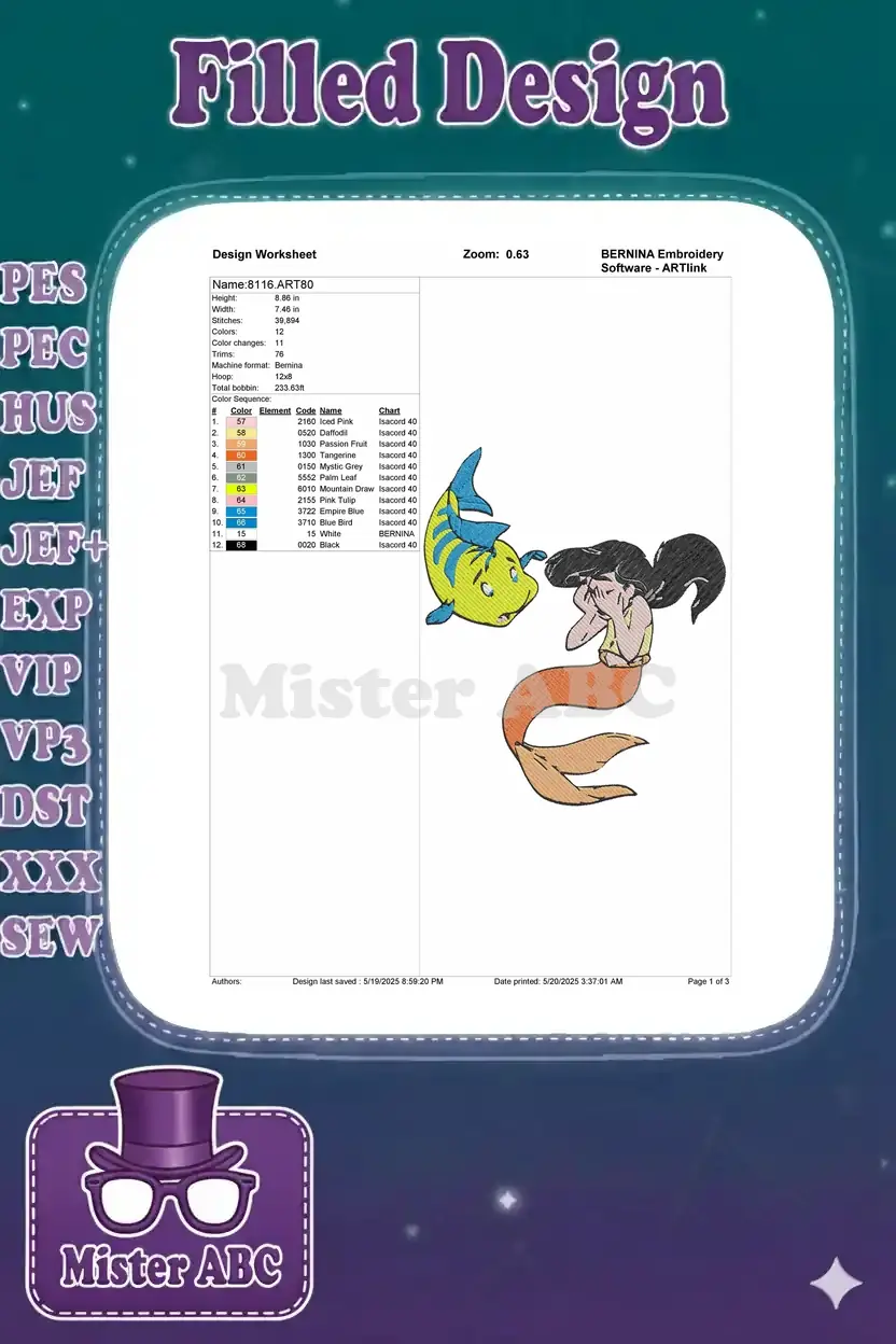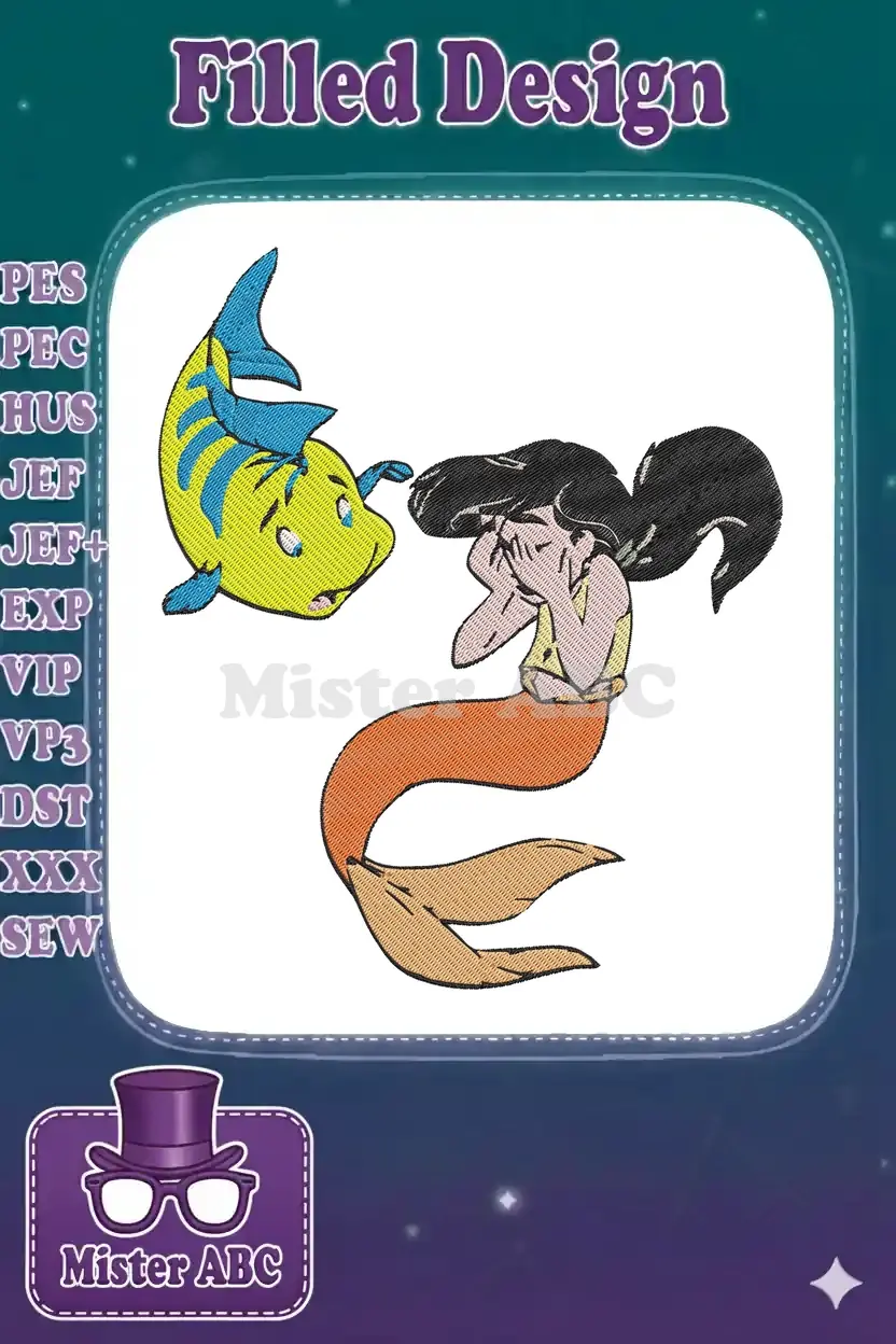 Crying Mermaid and Scared Flounder Best Friends Embroidery Designs