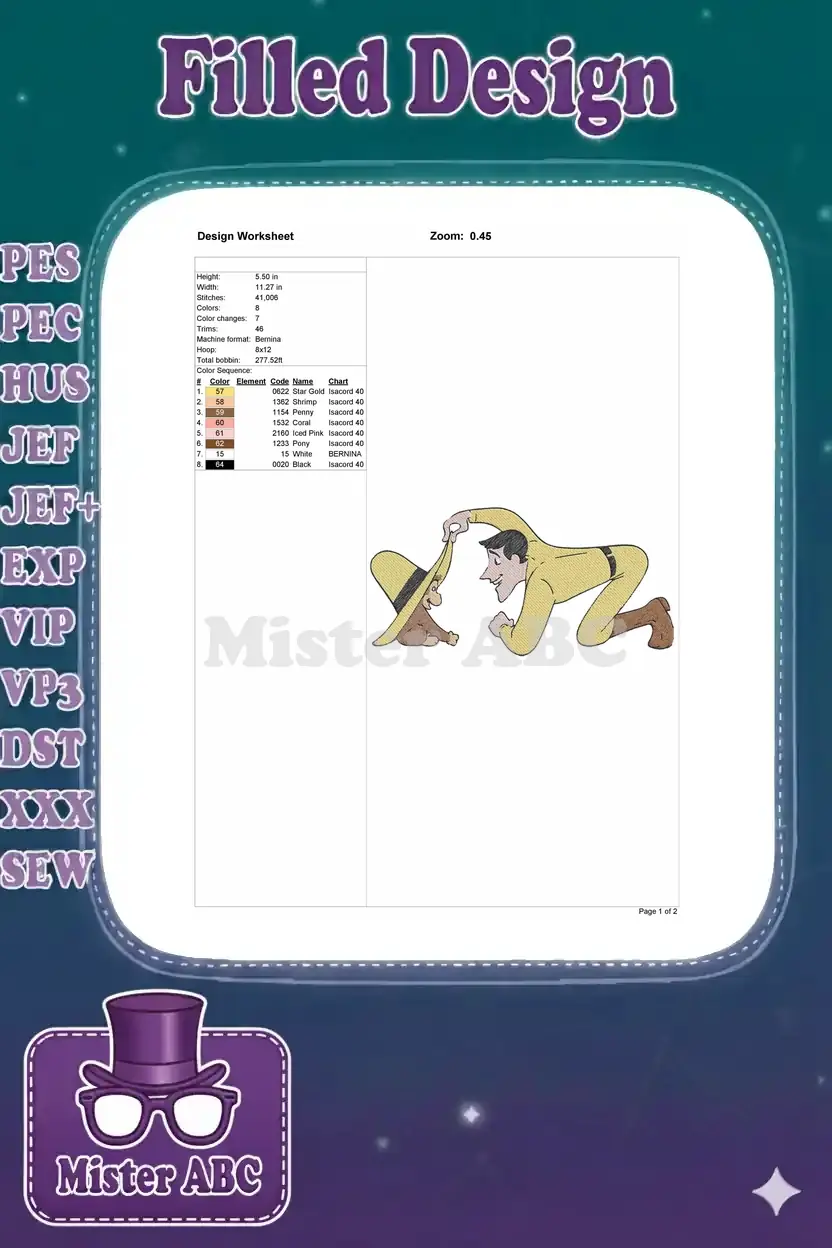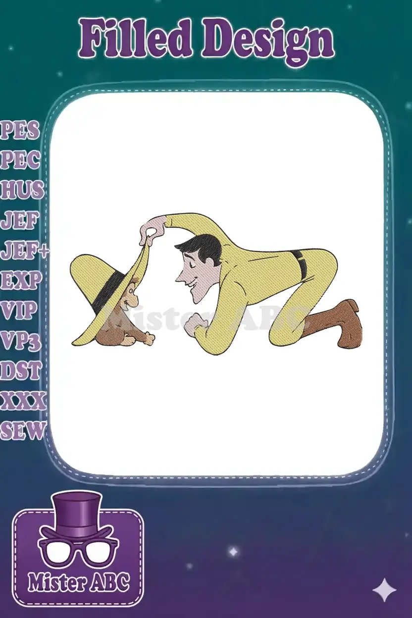 Curious George and Man with Yellow Hat playful embroidery designs