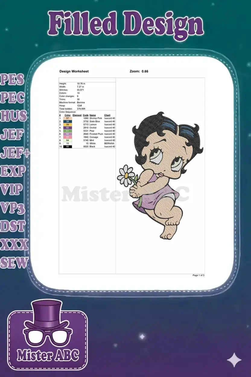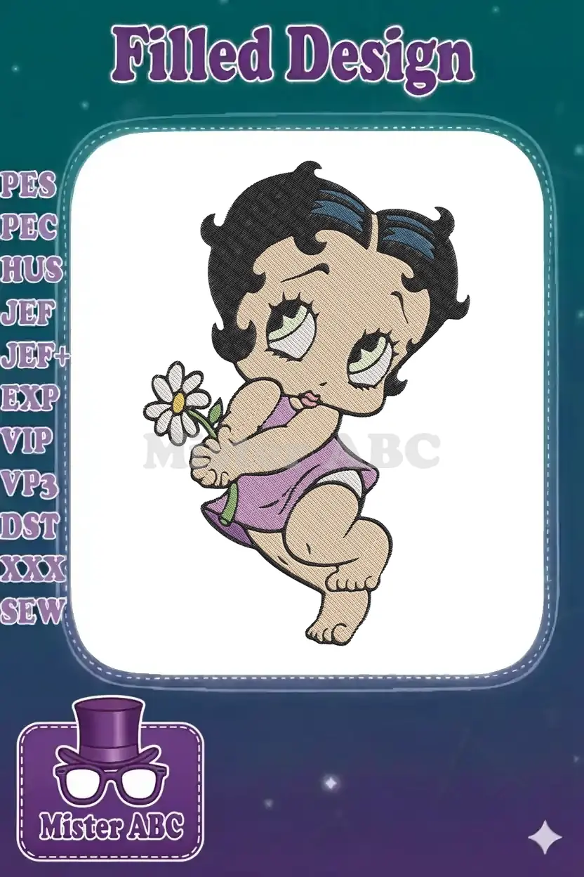 Cute Baby Betty Boop Holding Daisy Flower Embroidery Designs