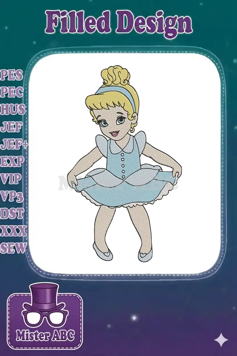 Cute Baby Cinderella Princess Blue Dress Embroidery Designs