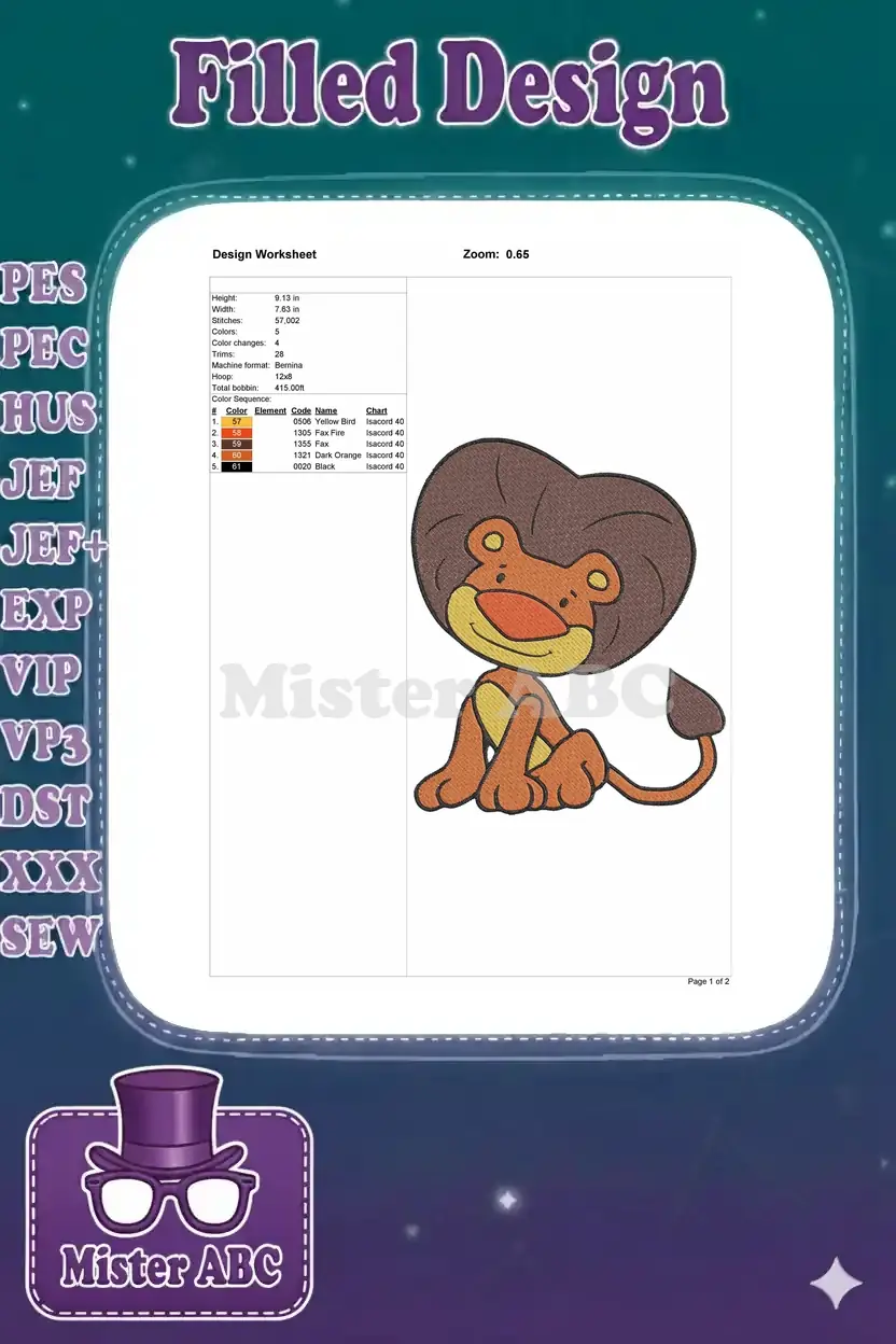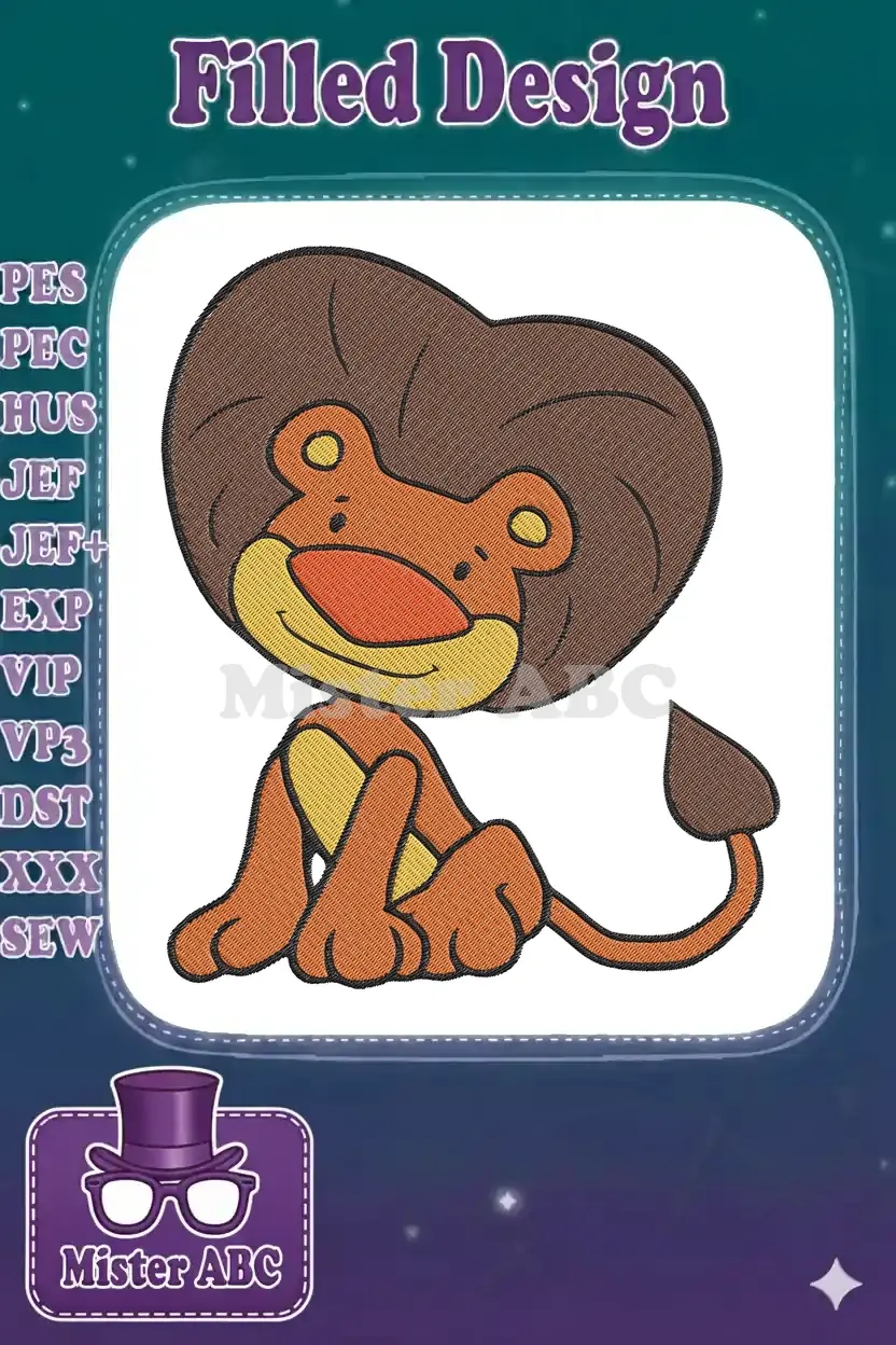 Cute baby lion cub cartoon animal embroidery designs