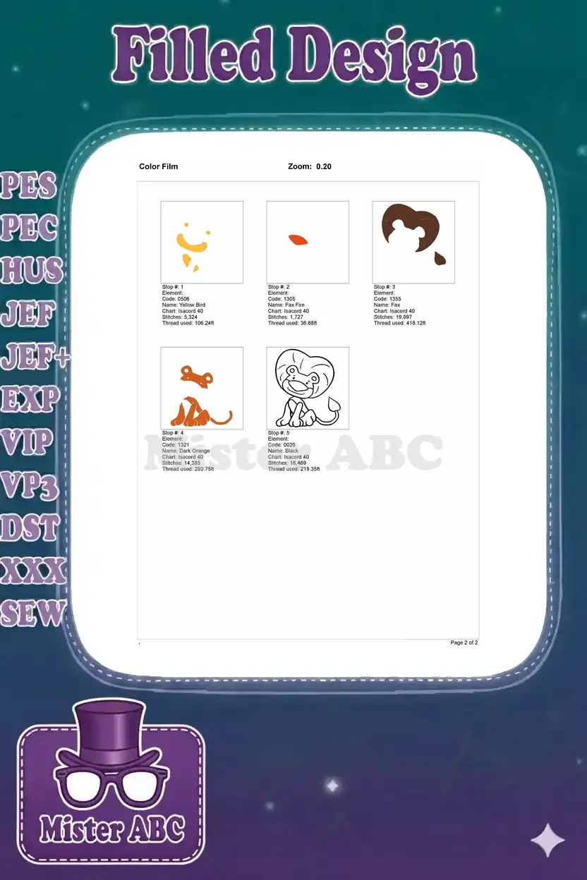 | Stitches | Colors | Thread Changes |