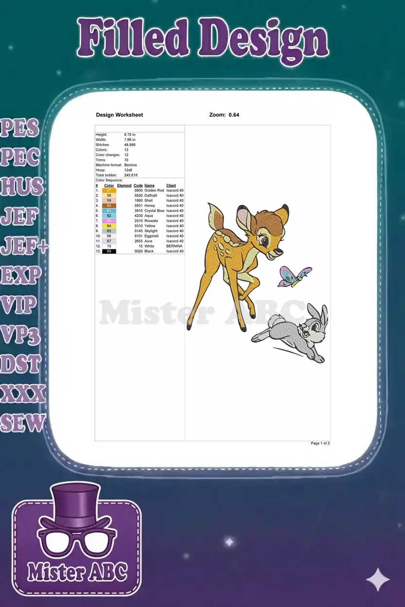 Cute Bambi deer Thumper rabbit butterfly embroidery designs