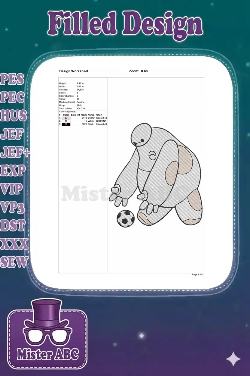 Cute Baymax Robot Playing Soccer Embroidery Designs for Kids
