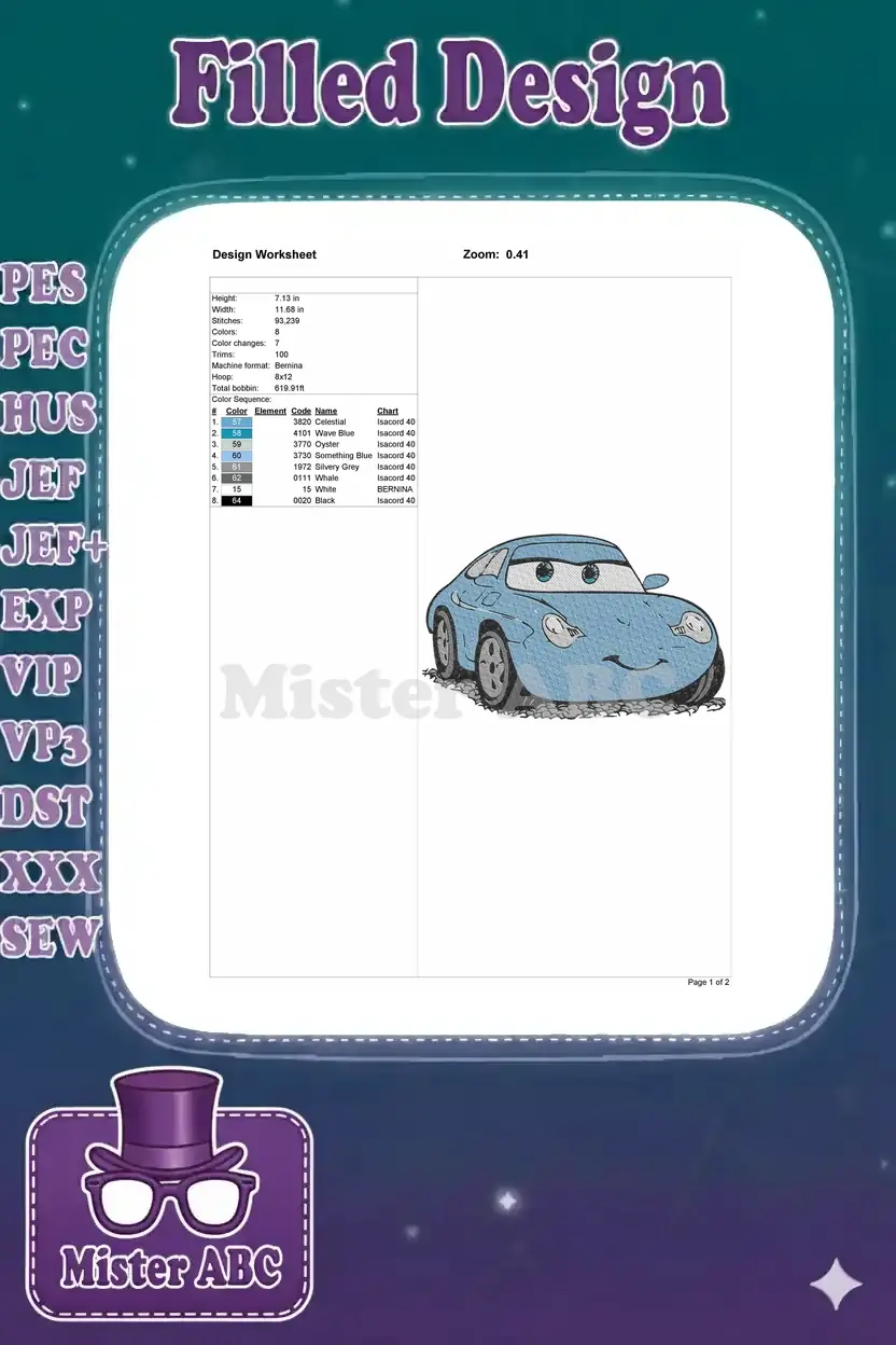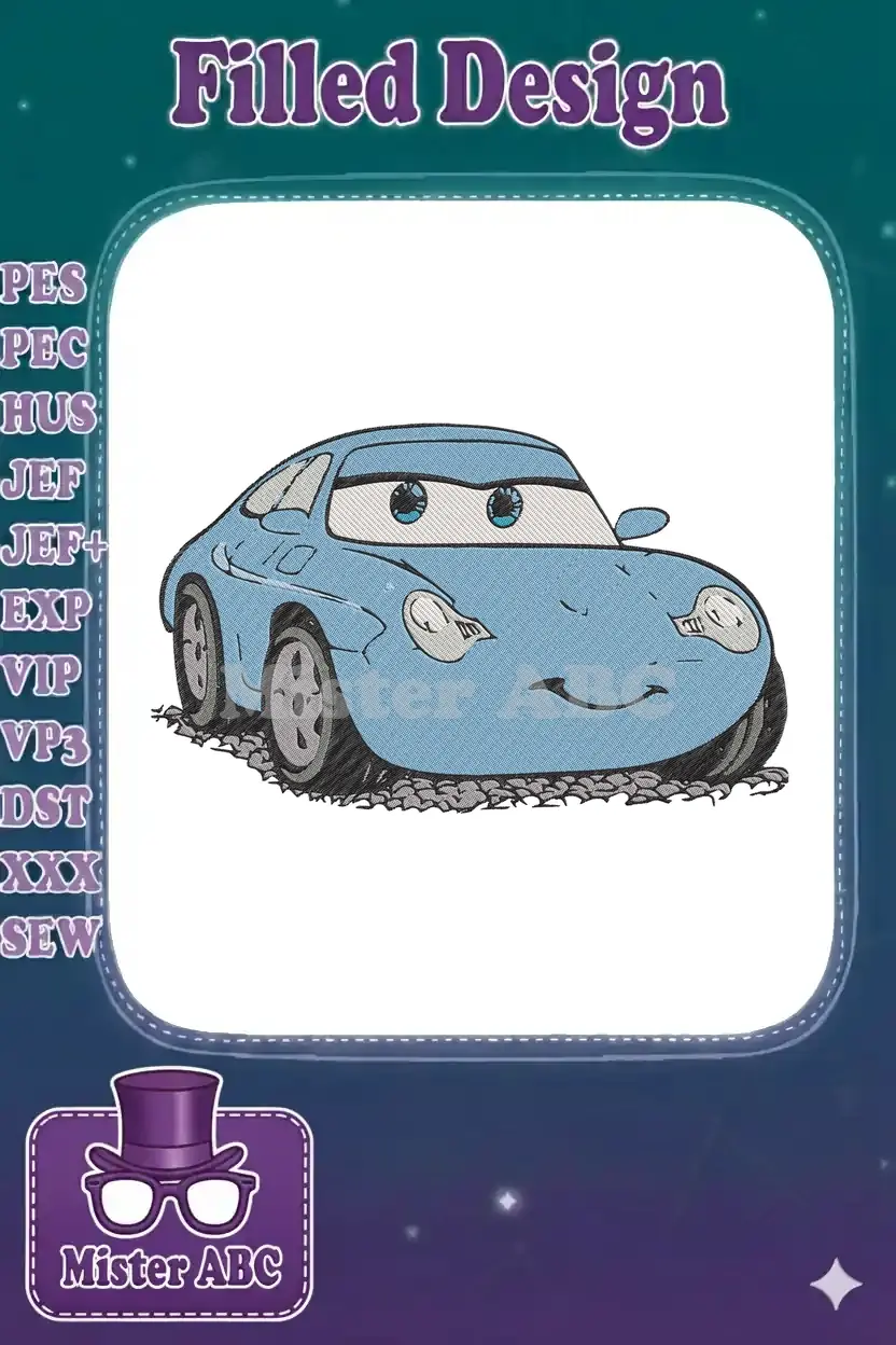 Cute blue cartoon car character embroidery designs for children