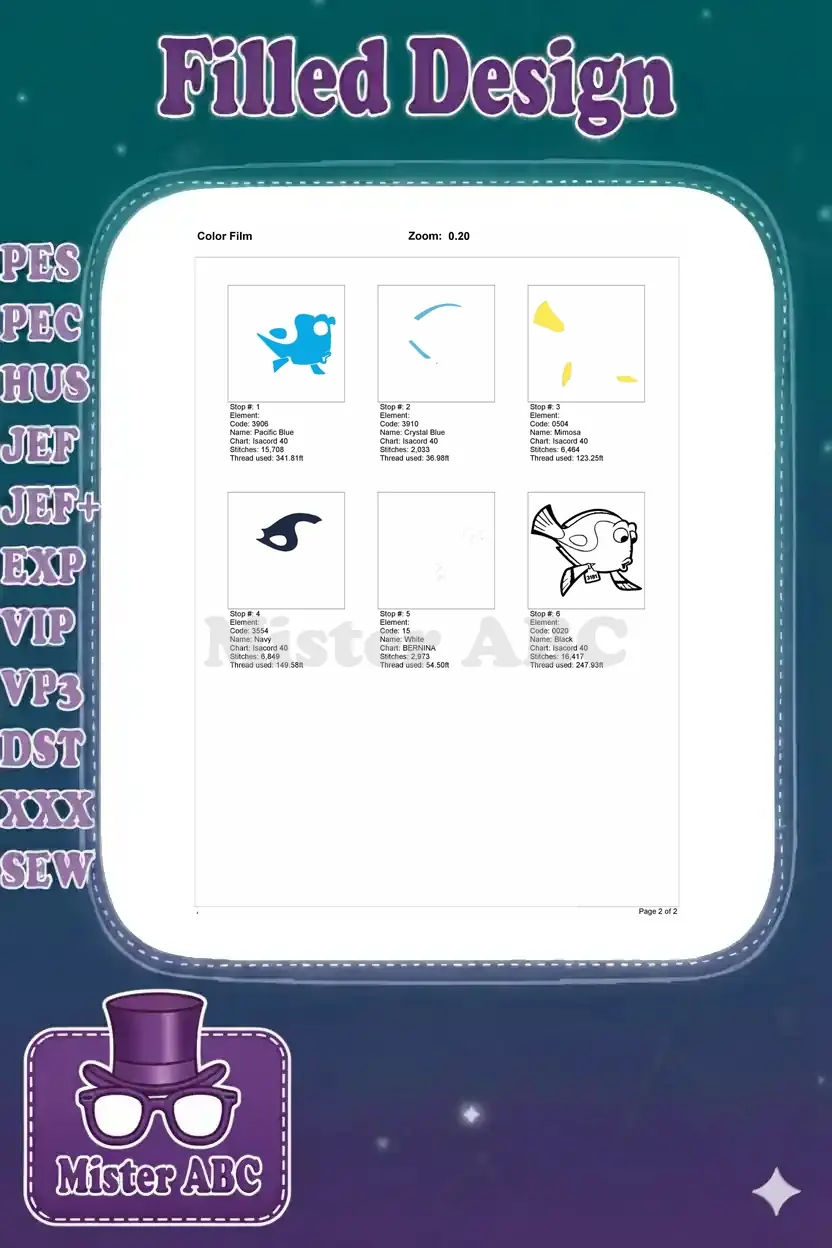 Bring the beloved Dory to life with this vibrant, fun embroidery design! Perfect for Disney fans and crafters of all skill levels.